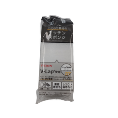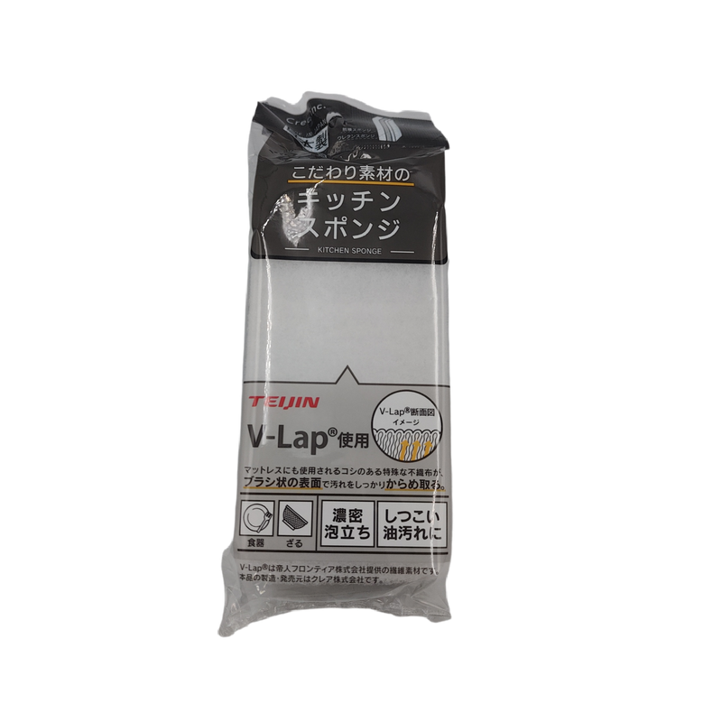 A kitchen sponge using TEIJIN's V-LapR. A special chewy non-woven fabric that is also used in mattresses has a brush-like surface that firmly traps dirt.