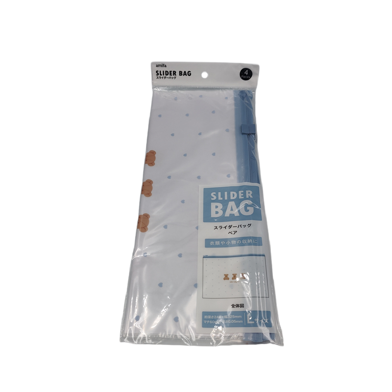 - A slider type bag that is convenient for storing innerwear, socks, small items, etc. - Has a cute teddy bear design in pale colors. - Comes with a gusset, making it easy to store and convenient for travel.