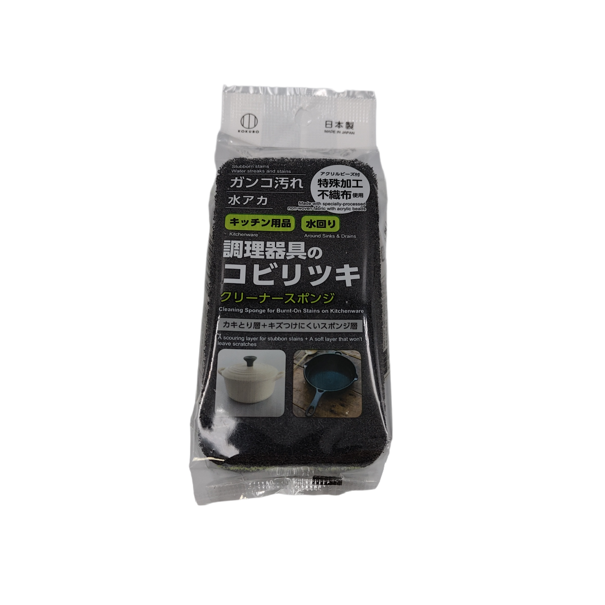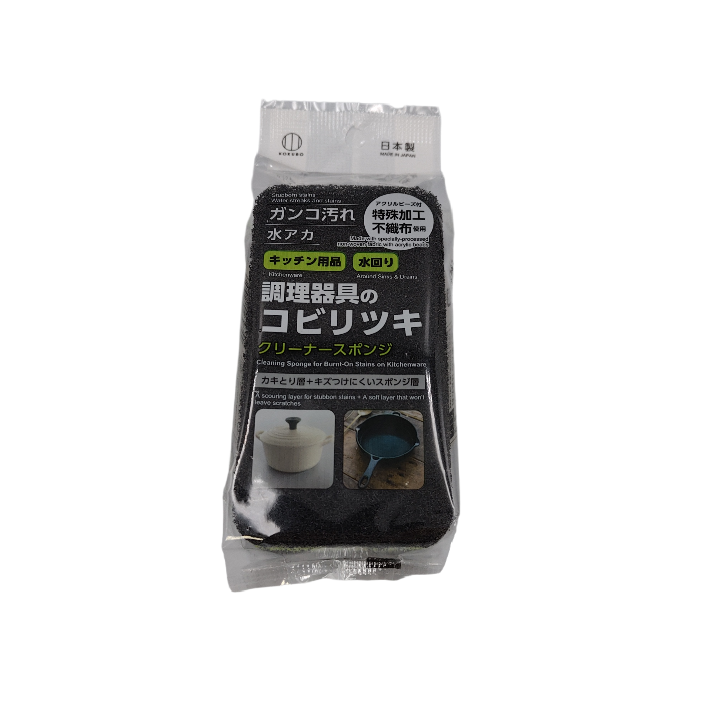 - For preventing cracks in cooking utensils. - For removing tough stains from kitchen utensils and water areas. - Oyster removal layer + scratch-resistant sponge layer. - Comes with acrylic beads. Made using specially processed non-woven fabric.
