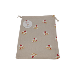 A design with scattered shortcake patterns. Great for snacks or small items. It is a vertical size.