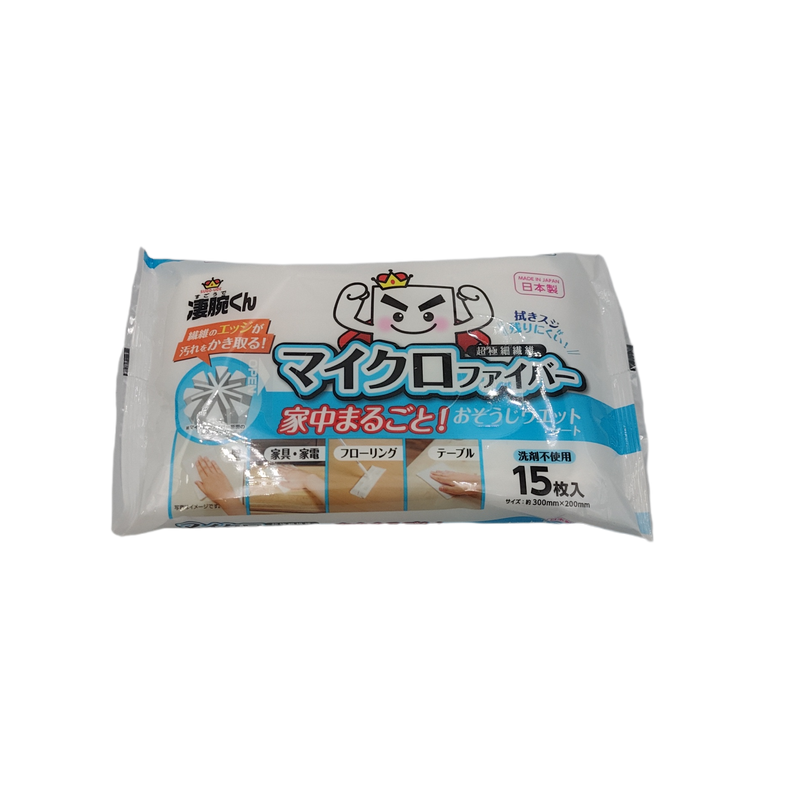 A cleaning wet sheet containing microfibers (ultra-fine fibers). The edges of the fibers scrape away dirt. Can be attached to flooring wiper. No detergent used.