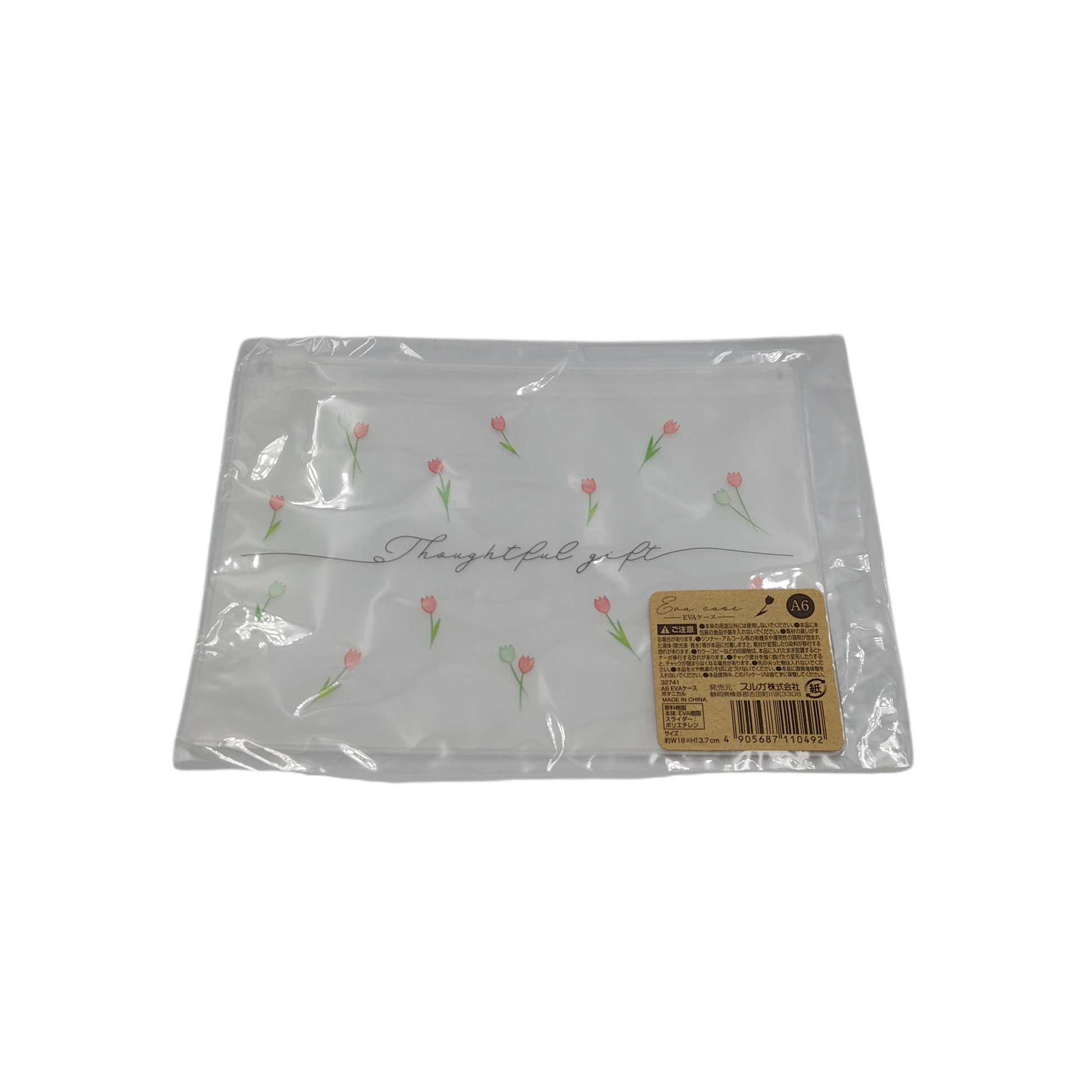 A6 size pouch with botanical design. The soft material allows you to see through the contents, making it convenient for organizing small items.