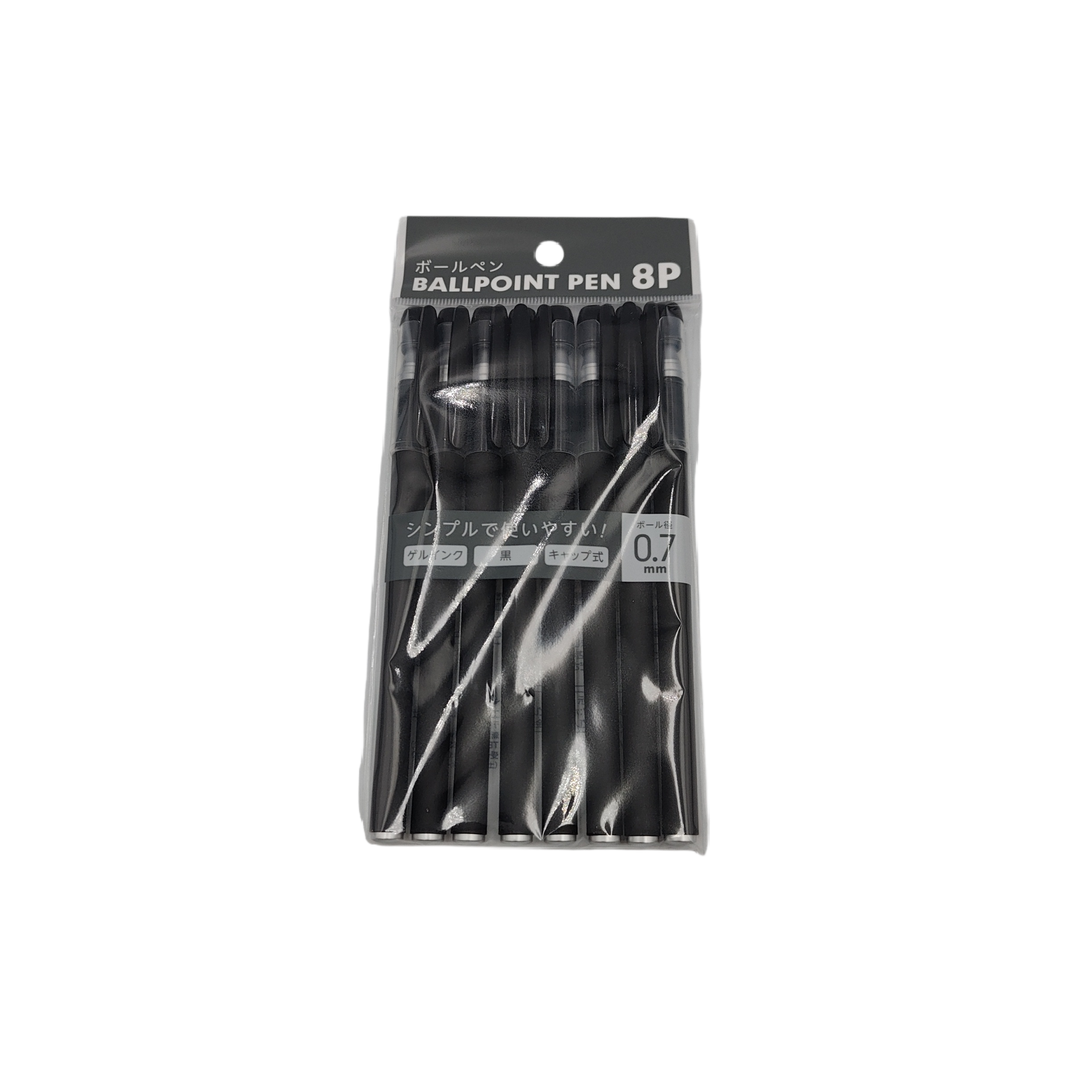 -A set of 8 gel ink ballpoint pens that write quickly and dry quickly.