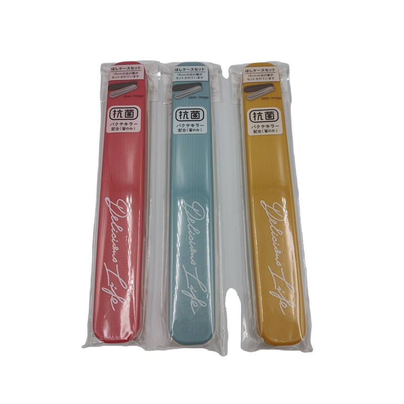 - A chopsticks case set with a stylish logo on the woodgrain lid.
