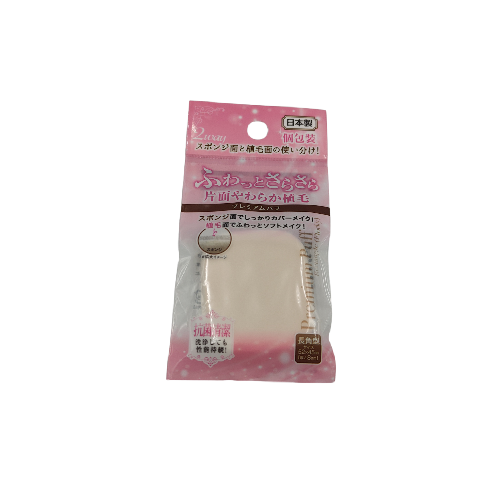 | Description of item | A makeup sponge puff with flocked hair on one side. The flocked side (flocked side) has a silky, smooth texture that gives your skin a soft impression. The sponge surface is made of material that emphasizes coverage, and it thoroughly covers areas of concern such as pores. |