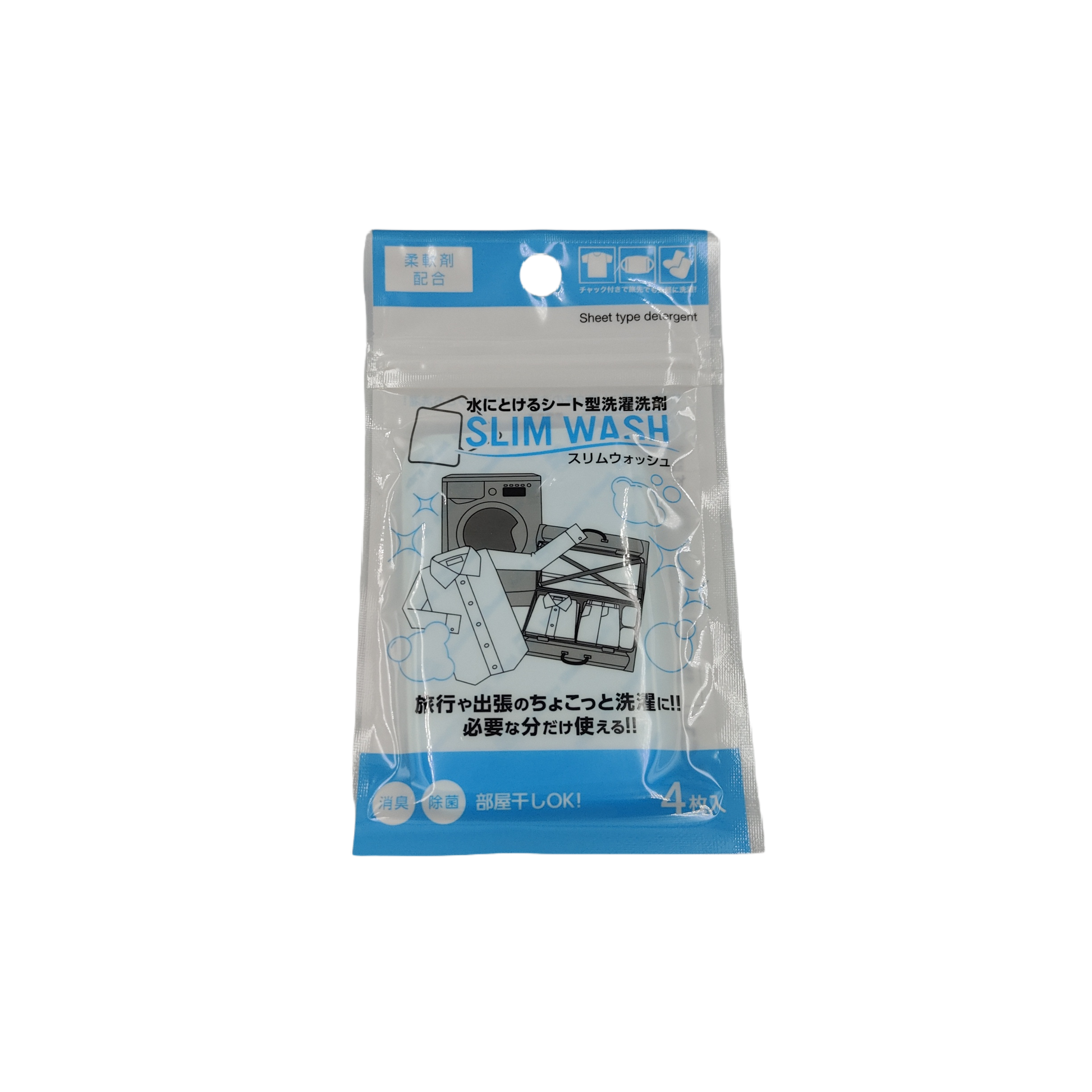 - Sheet-type laundry detergent containing fabric softener that dissolves in water. - Ideal for doing a little laundry while traveling or on a business trip, you can use only as much as you need, and you can quickly wash it in the sink at your accommodation. - Comes with a zipper so you can easily wash it while traveling. -Contains deodorant and disinfectant and can be dried indoors. - Light and not bulky, making it convenient to carry.