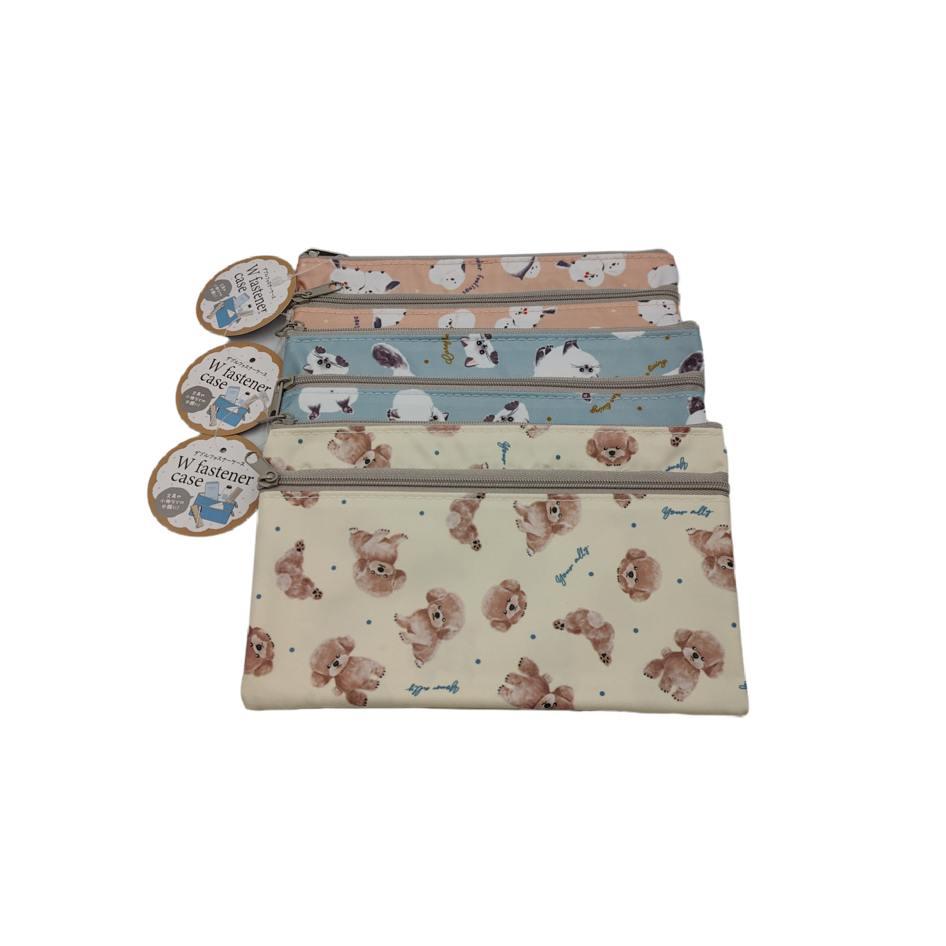 This is a pouch series made of cute dog, cat, and bird patterned fabric.