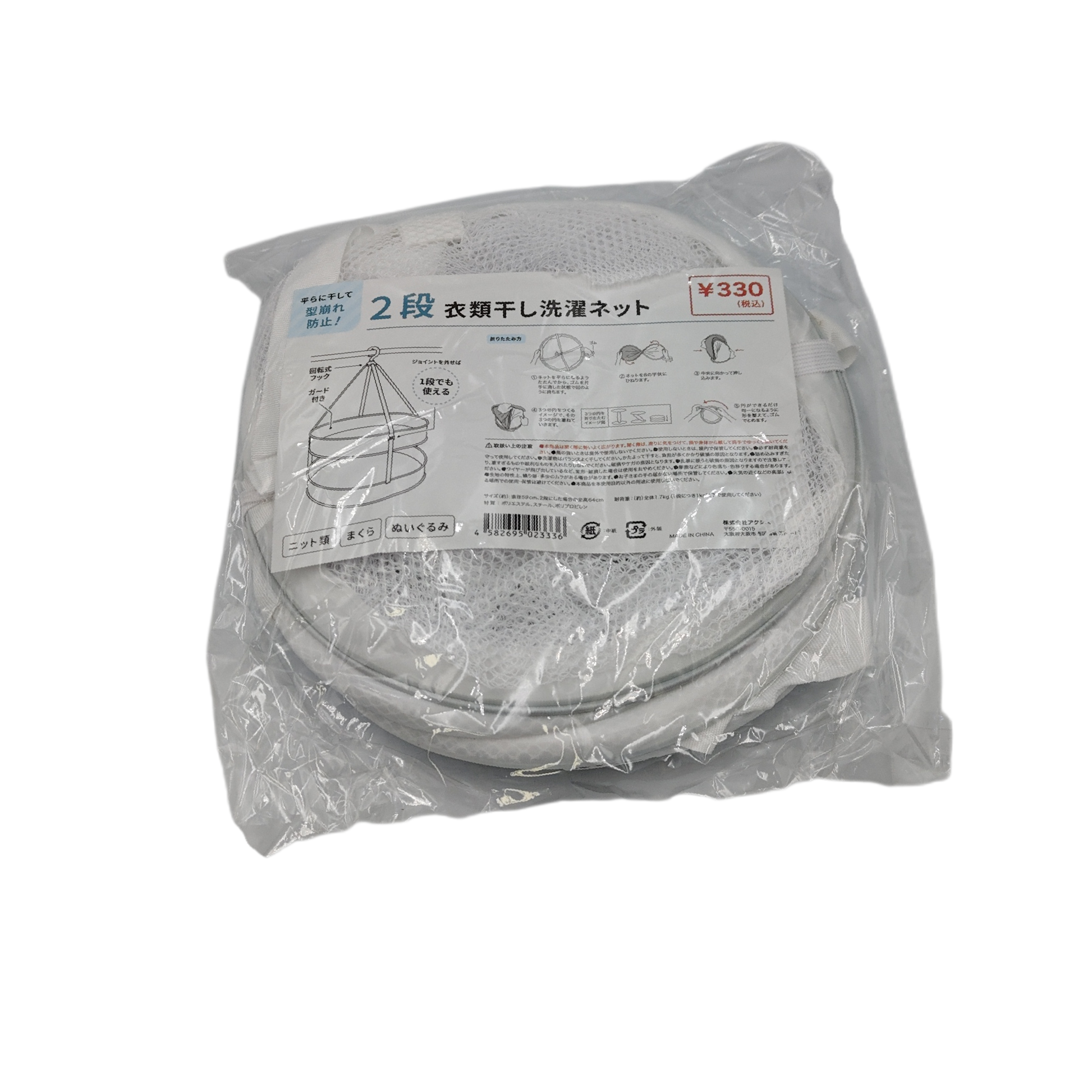 | Description of item | ・A 2-level net for flat drying that is convenient for drying clothes with stretched collars and shoulders, clothes with marks on hangers, plush toys, pillows, etc.・It can be used even with one stage by removing the connecting part. |