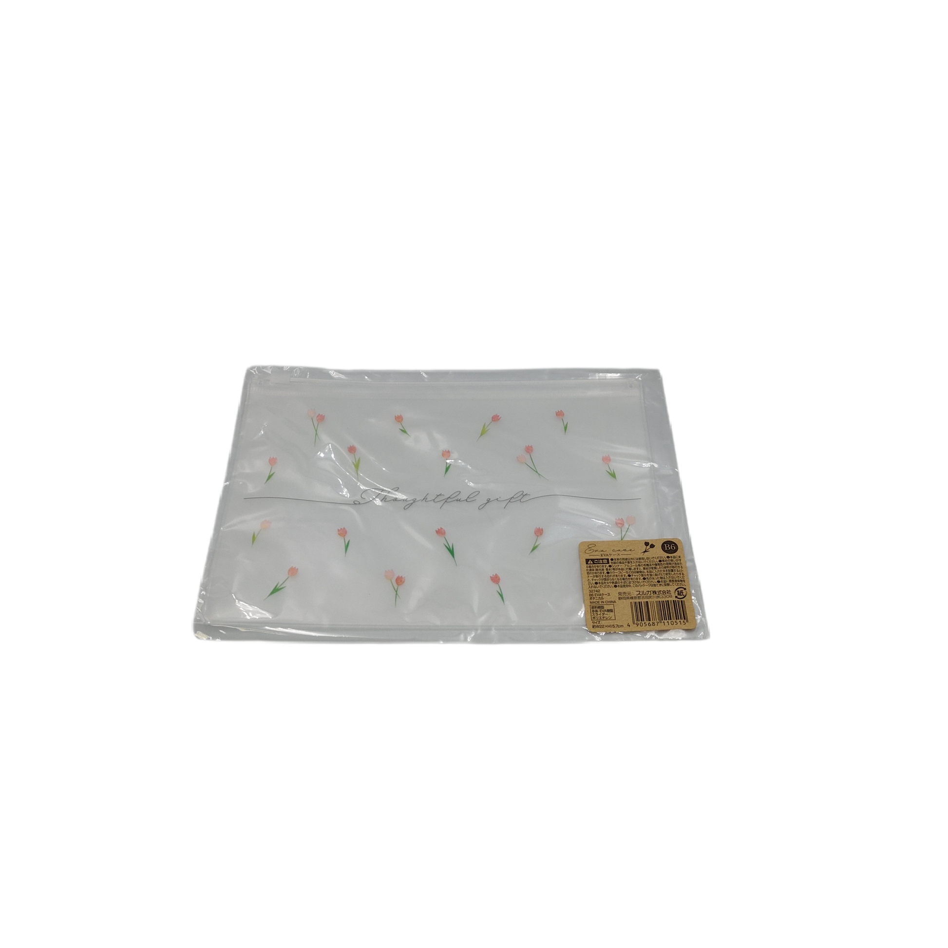 A B6 size pouch with a botanical design. The soft material allows you to see through the contents, making it convenient for organizing small items.