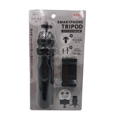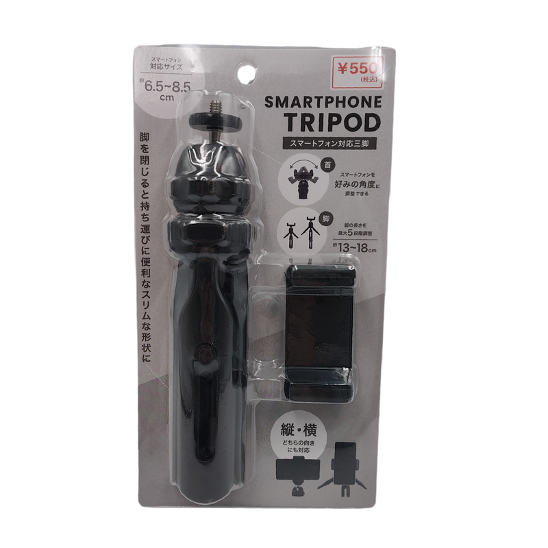A smartphone compatible tripod that is convenient for taking photos and videos. When carrying, it can be folded and made compact.