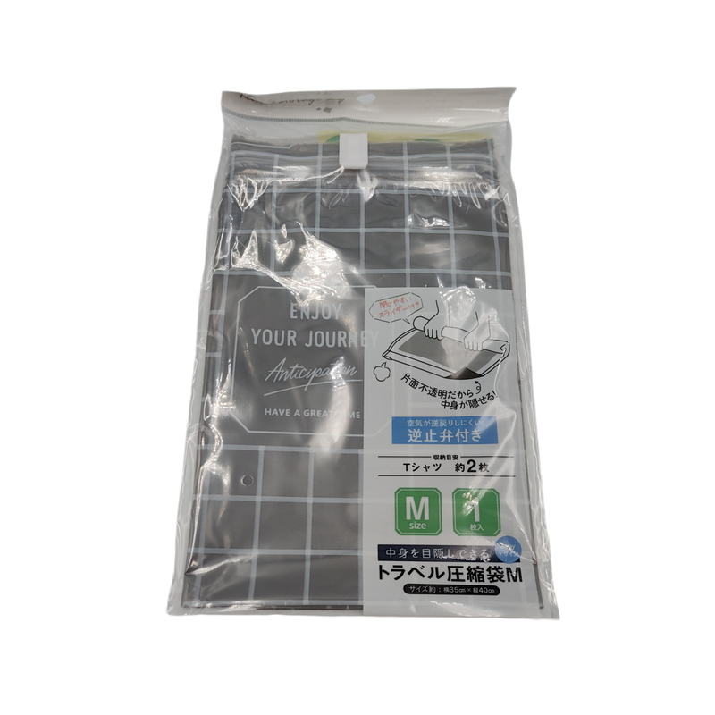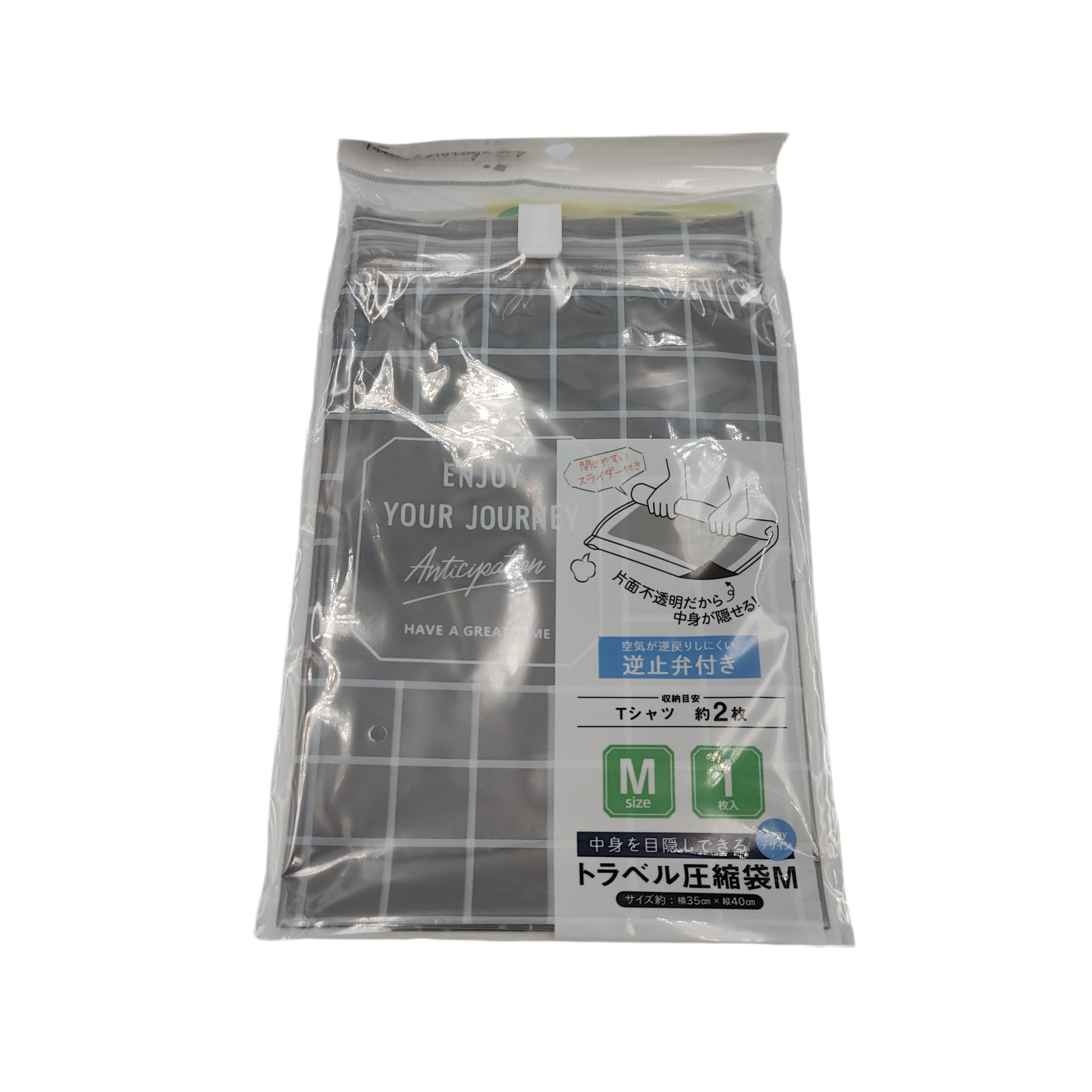 ・A 2-way compression bag that hides the contents. - The design is on one side and it is opaque, so you can hide the contents. -The other side is transparent so you can see what is stored. - Equipped with a check valve that prevents air from flowing back and a chuck slider that is easy to close.