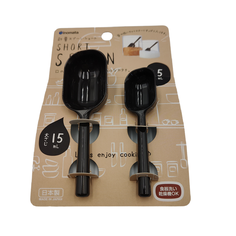 It fits easily into a short canister or a seasoning pot for cooking. There are two sizes: the larger one is a tablespoon, and the smaller one is a teaspoon.