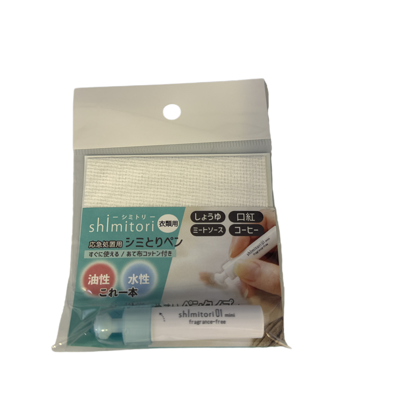 - A set of first-aid stain remover for clothing and cotton patch.・With Shimitori, you don't have to worry about spilled food when you're out and about.・This one for both water-based and oil-based stains!・Fragrance-free type. - Pen type that is easy to carry.