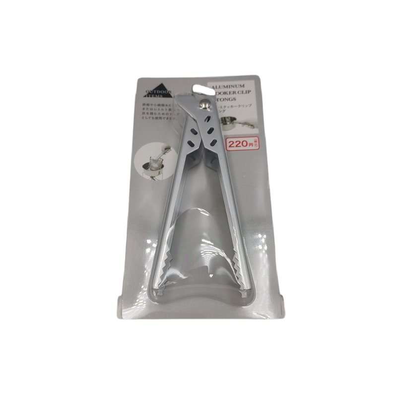 - Aluminum cooker clips and tongs useful for holding griddles and small pots.・The handle part can also be used as tongs for grabbing retort food or charcoal.・A convenient 2-way type product.