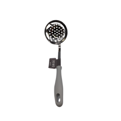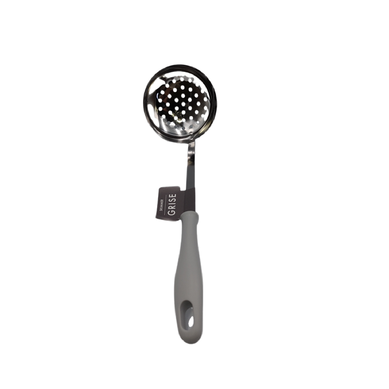 A simple and stylish kitchen tool. It has a calm gray handle.
