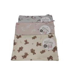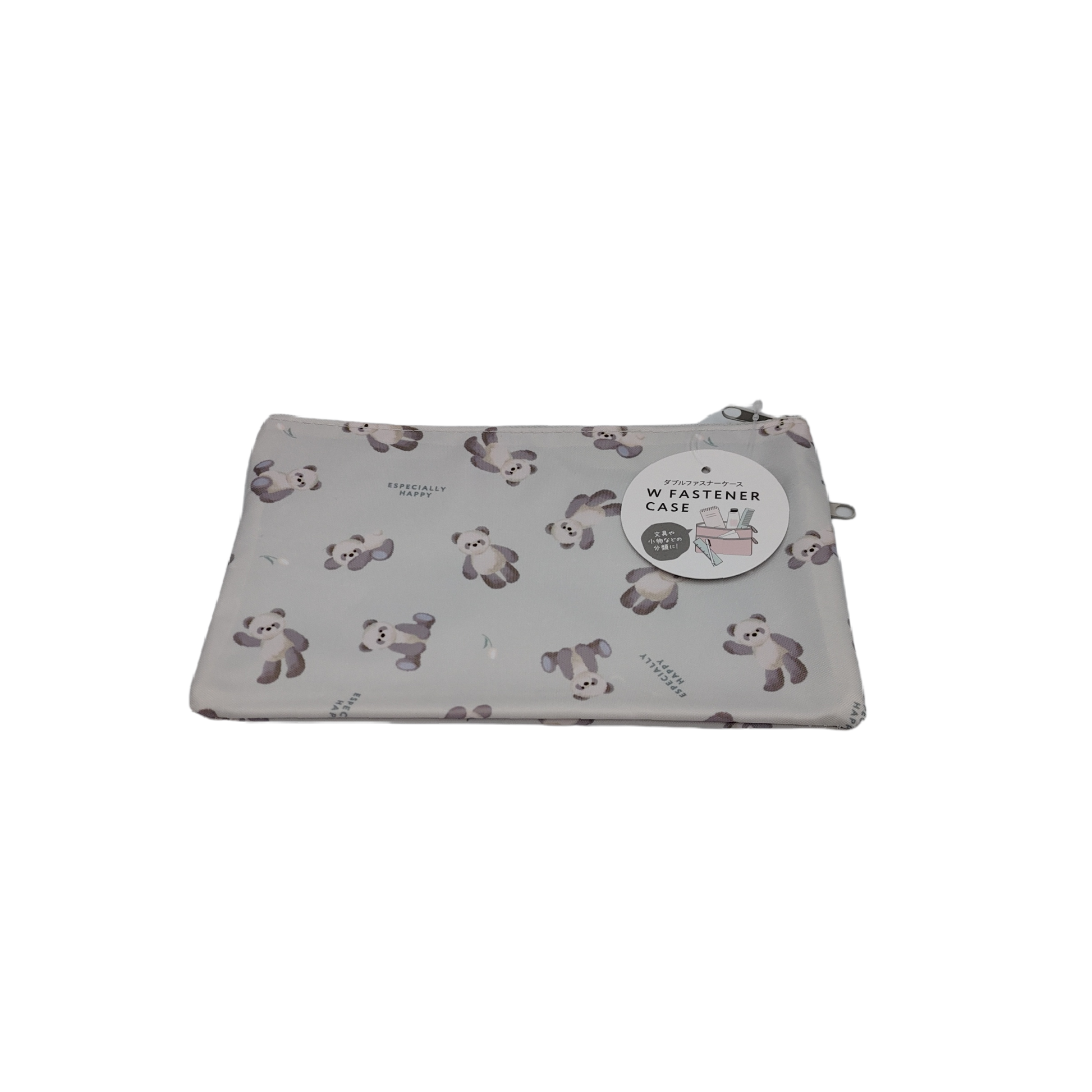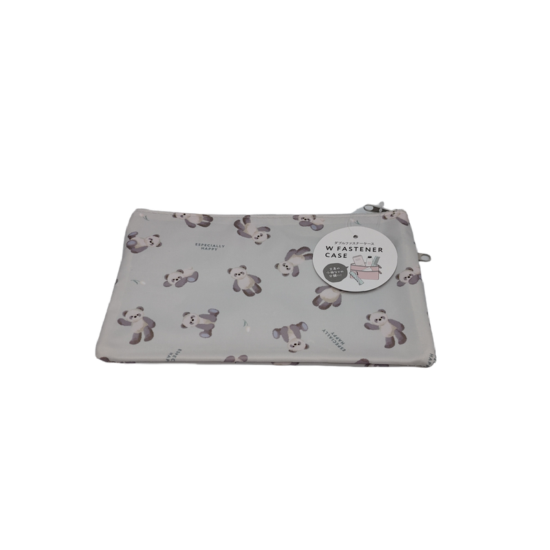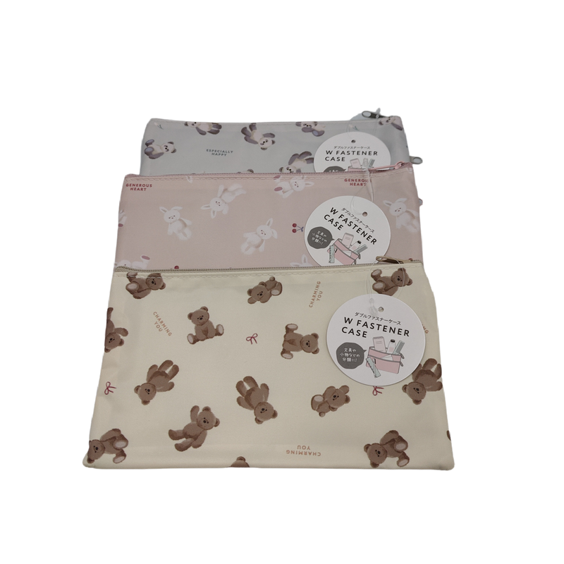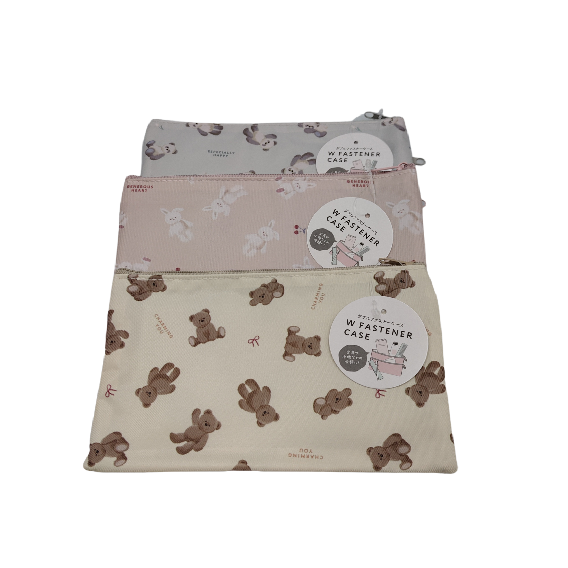 A double zipper case with a fluffy stuffed animal design. Two zippers are convenient for sorting.