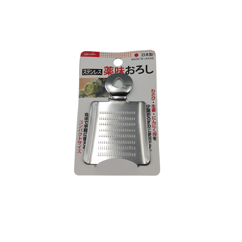 A small condiment grater made of stainless steel. It's a compact size that allows you to put down just the amount you need.