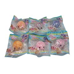 A cute octopus-shaped squishy material with air and colorful granular puffs inside. You can squeeze it, stretch it out and play. There is no fragrance.