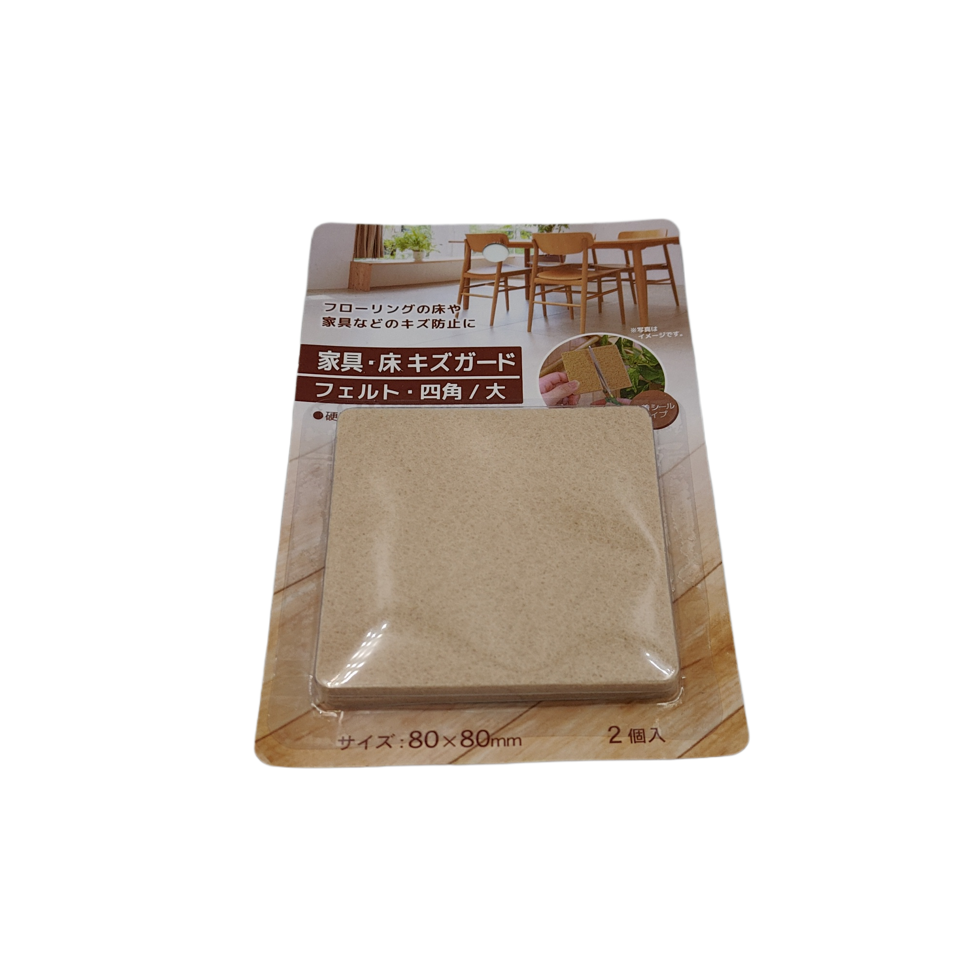 -Protects interior furniture, hardwood floors, walls, etc. from scratches. - Made of hard felt material, so it can be used to prevent scratches when installing furniture or moving lightweight furniture. - Can be used for vibration isolation in audio equipment, etc., and for wall contact areas such as picture frames.・Contains 2 square types, 80mm long x 80mm wide. Since it is a large size, you can use scissors to cut it to your desired size. - Adhesive type for easy installation.