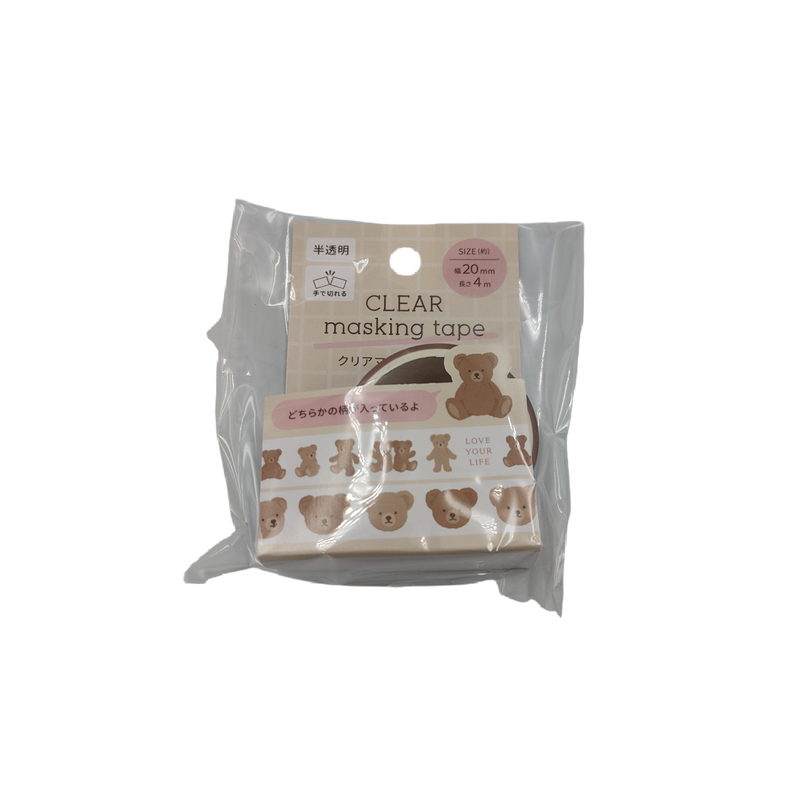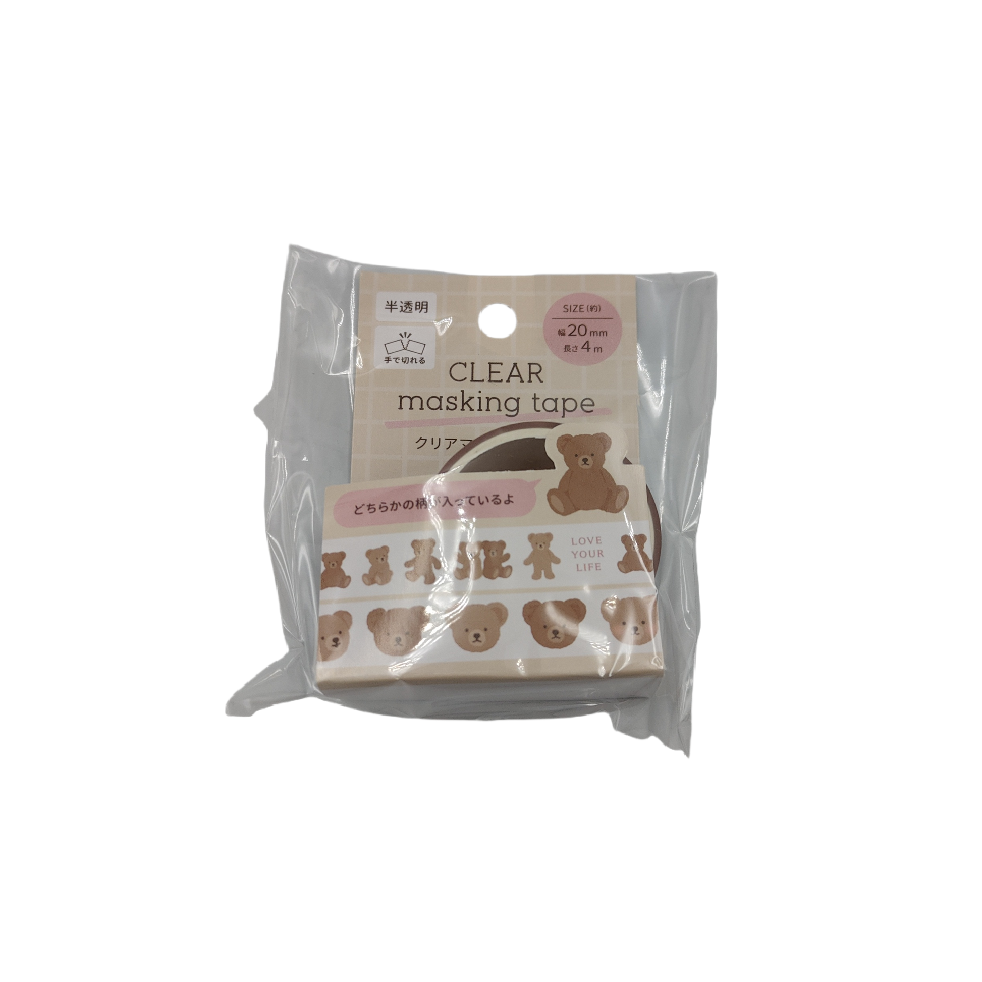 Clear masking tape with a bear pattern. You can enjoy the sense of transparency when used to decorate items made of clear materials such as glass and film. It can be easily cut by hand and removed cleanly.