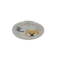 A series of cute Shiba Inu dogs. A small plate with a Shiba Inu print.