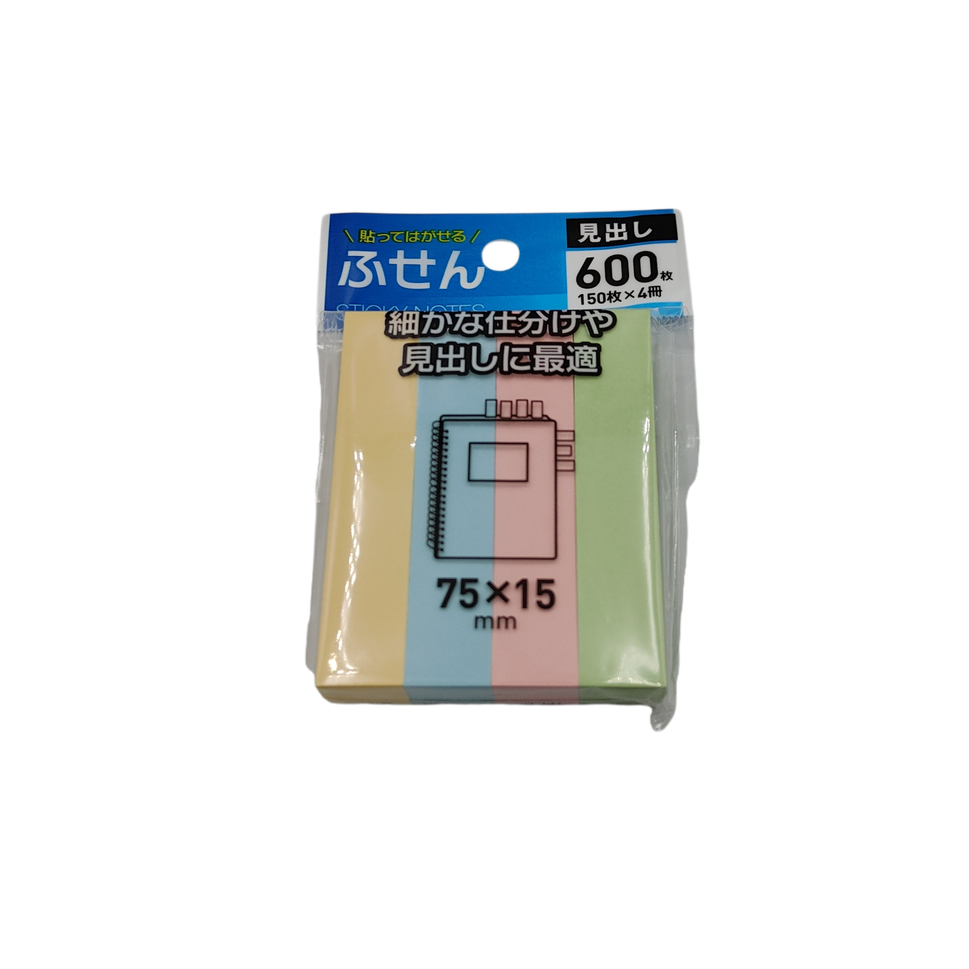 These sticky notes are useful for headings and sorting. 100 pieces each in 4 colors: yellow, blue, pink, and green.