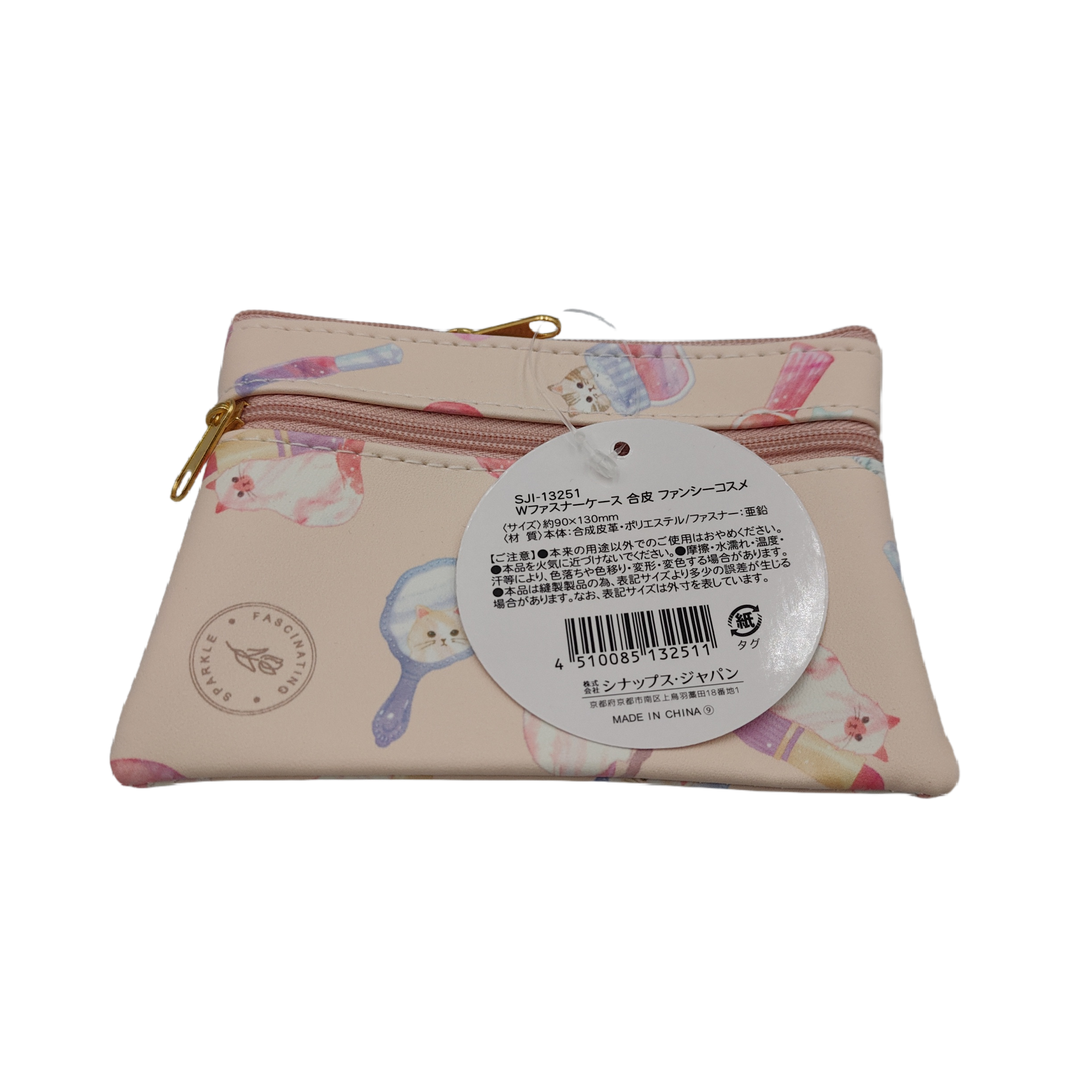 This case is made of synthetic leather with cute animal and cosmetic patterns printed on it. This accessory case has a double zipper for convenient sorting.