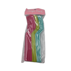 -Colorful large capacity 10P fork. - Contains 4 pink, 3 yellow-green, and 3 light blue. - Recommended for outdoor activities such as picnics and BBQs, and for parties.