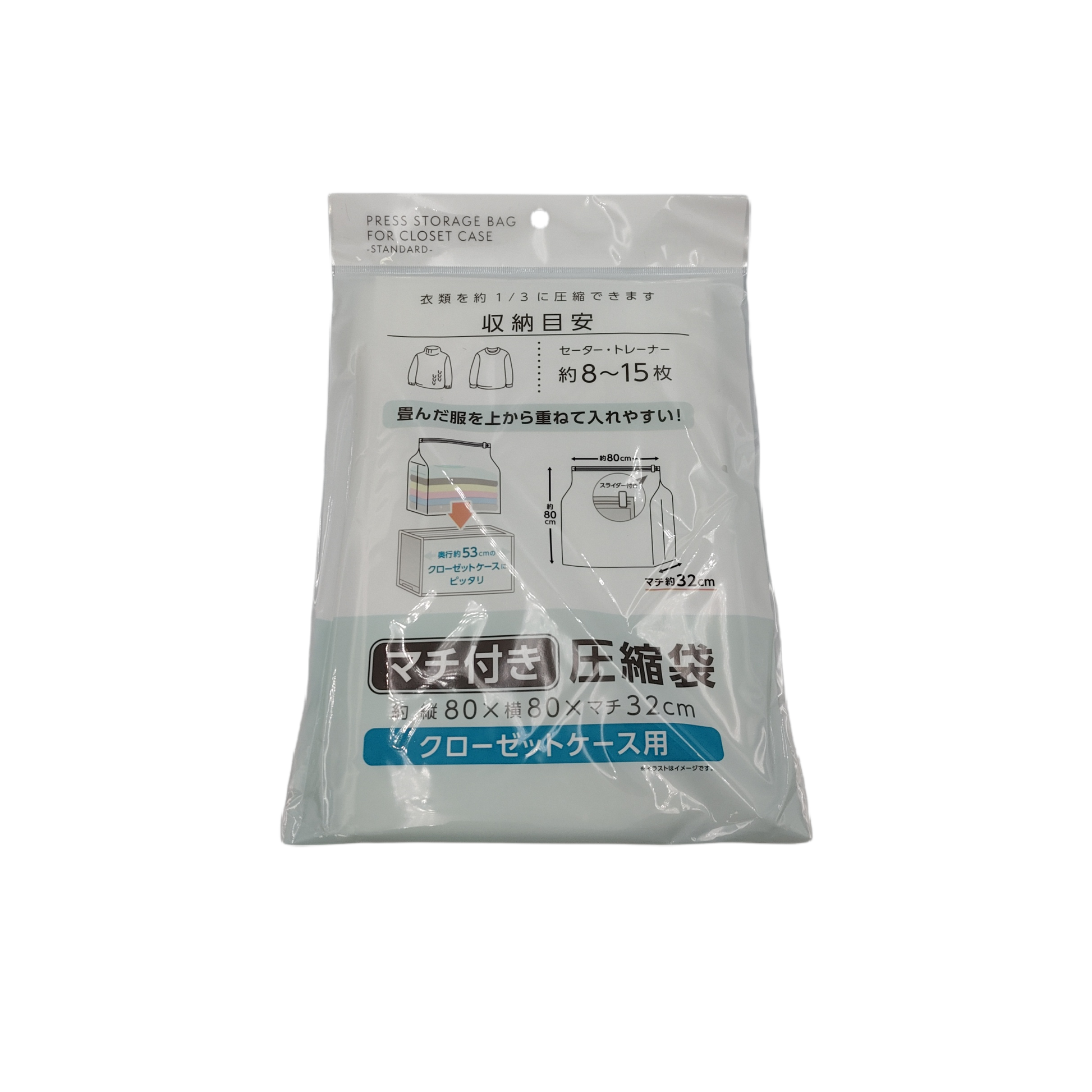 | Description of item | ●It becomes a compression bag with a gusset. ●It is sized to fit neatly into a closet case. ●Can hold 8 to 15 sweaters or sweatshirts. |