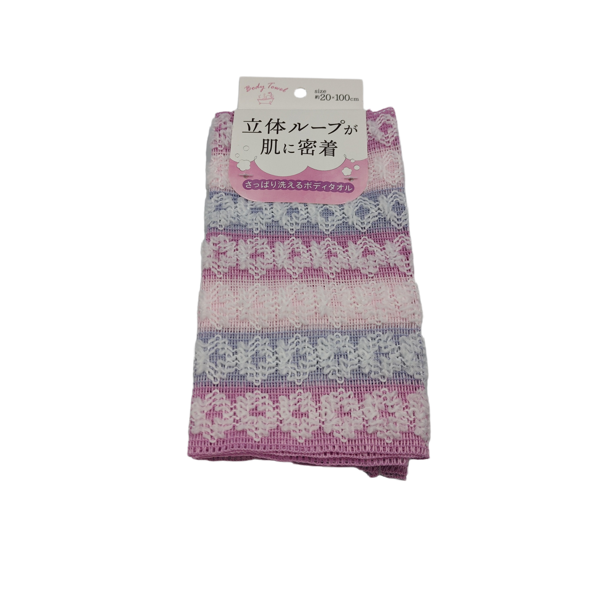 ●This is a body towel with circular 3D loops woven into the towel. ●The unevenness of the loops makes this a body towel that lathers well. ●The size is approximately 20 x 100cm.