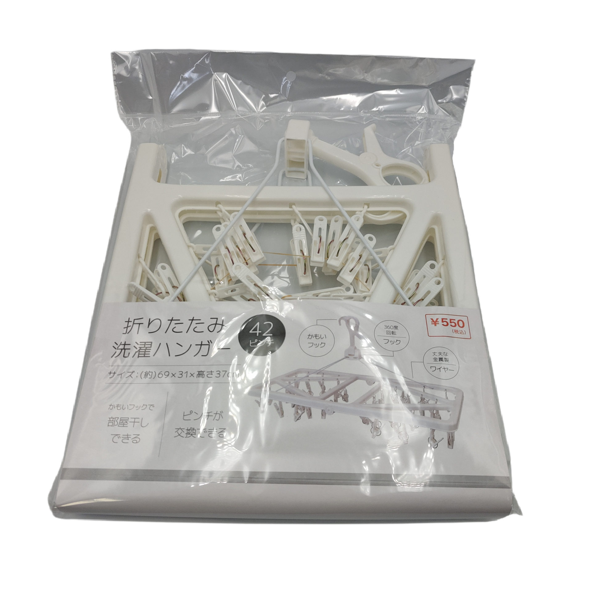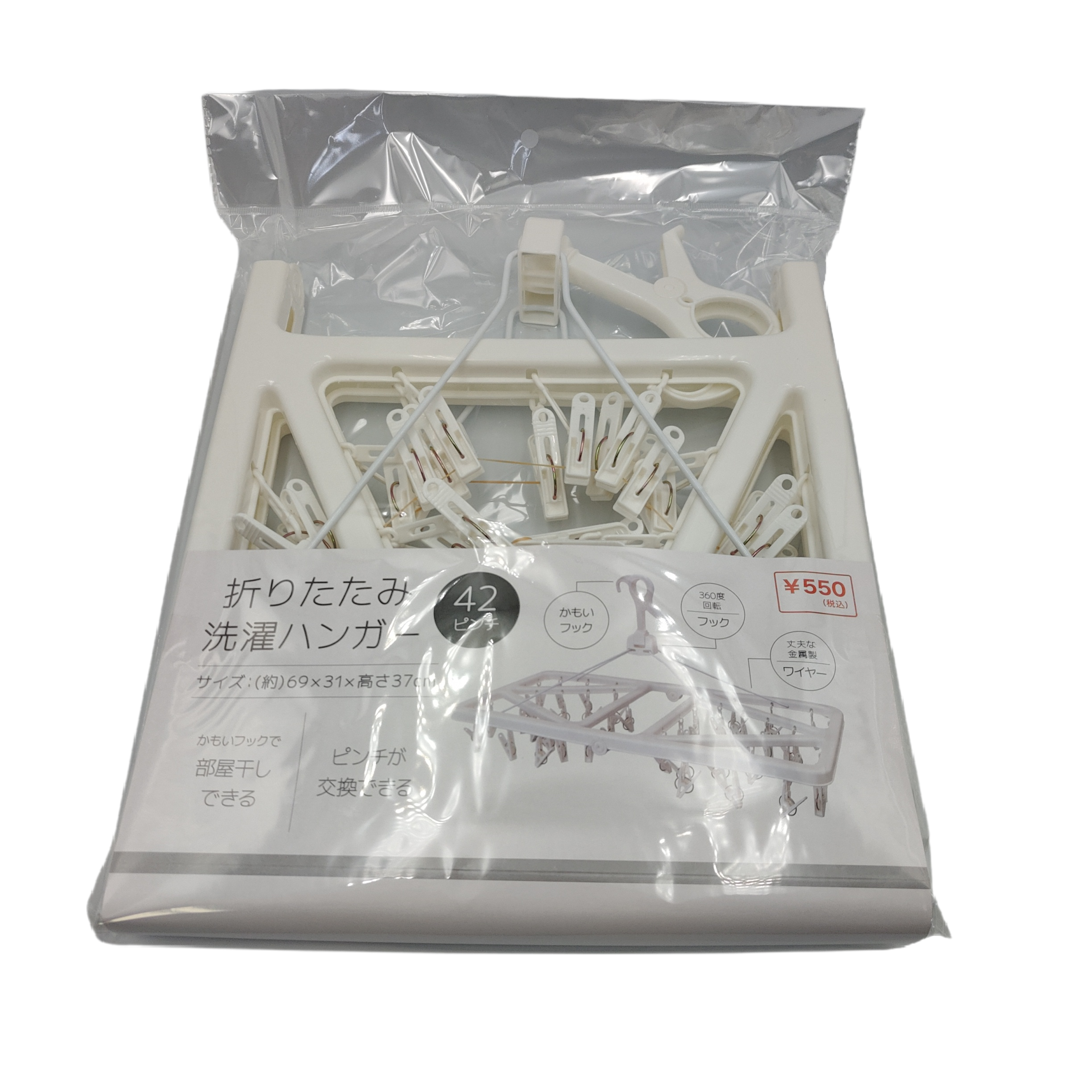 - A laundry hanger with 42 pinches that allows you to dry a lot at once. - Can be folded in half for storage.