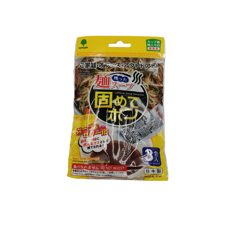 ・Great for use at home, in the office, and outdoors! ・Turns soup into gel! Can be thrown away together with the container. ・1 packet per 180cc. Just add this product to the remaining soup and stir for about 10 seconds. *If the amount of remaining soup is more than 180cc or is difficult to solidify, use 2 packets.