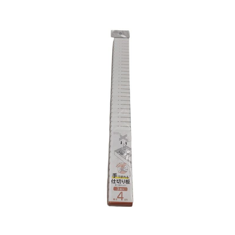 ●A partition board that can be folded to the desired length by hand. ●You can store partitions by crossing and combining them. ●Height 4cm, 3 pieces included.