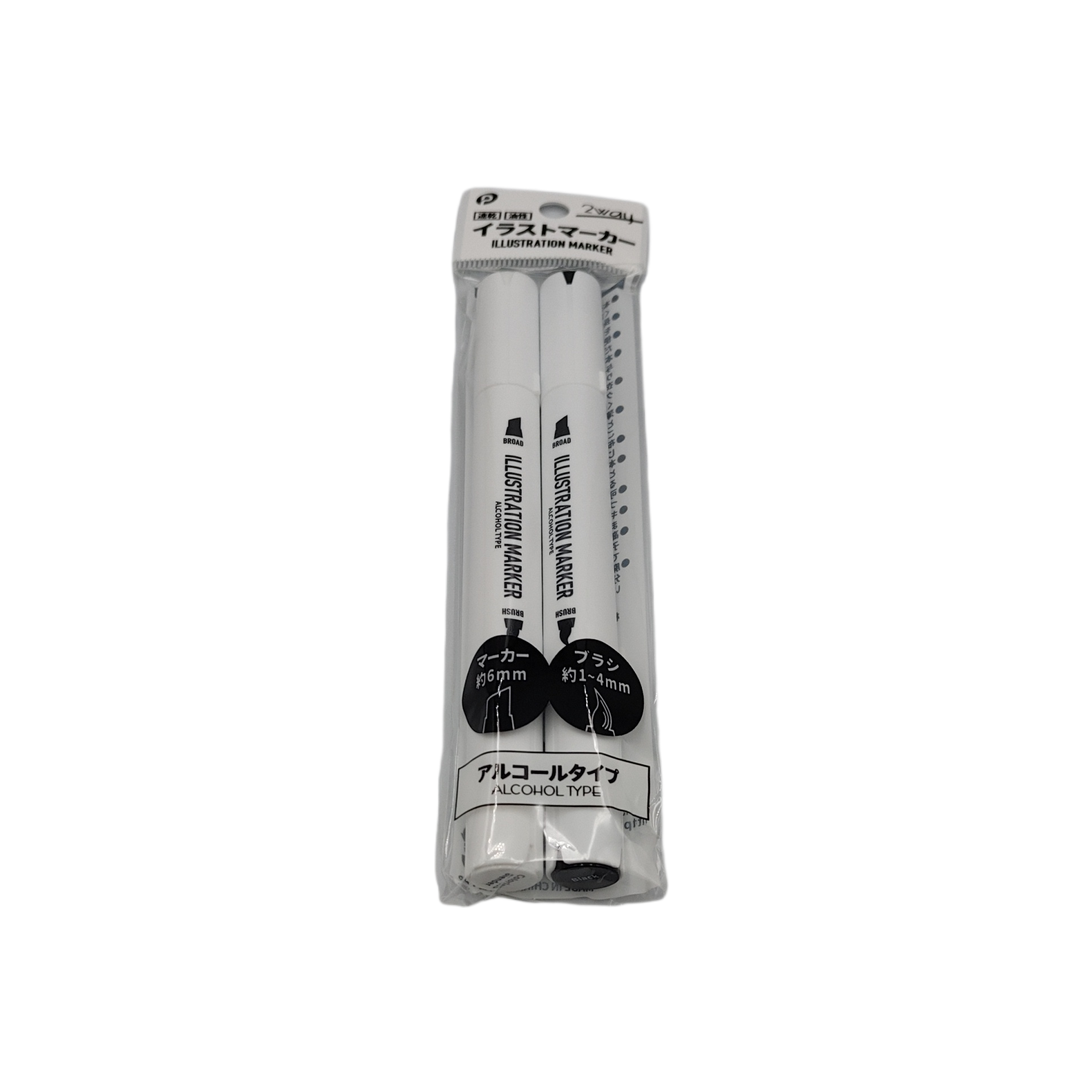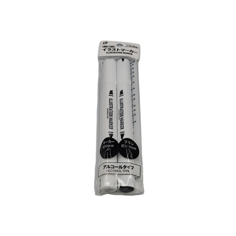 ・Set of 2: Colorless Blender, Black ・Permanent alcohol marker with vivid coloring ・Ideal for coloring illustrations ・Can be used for a wide range of expressions such as gradation and blurring