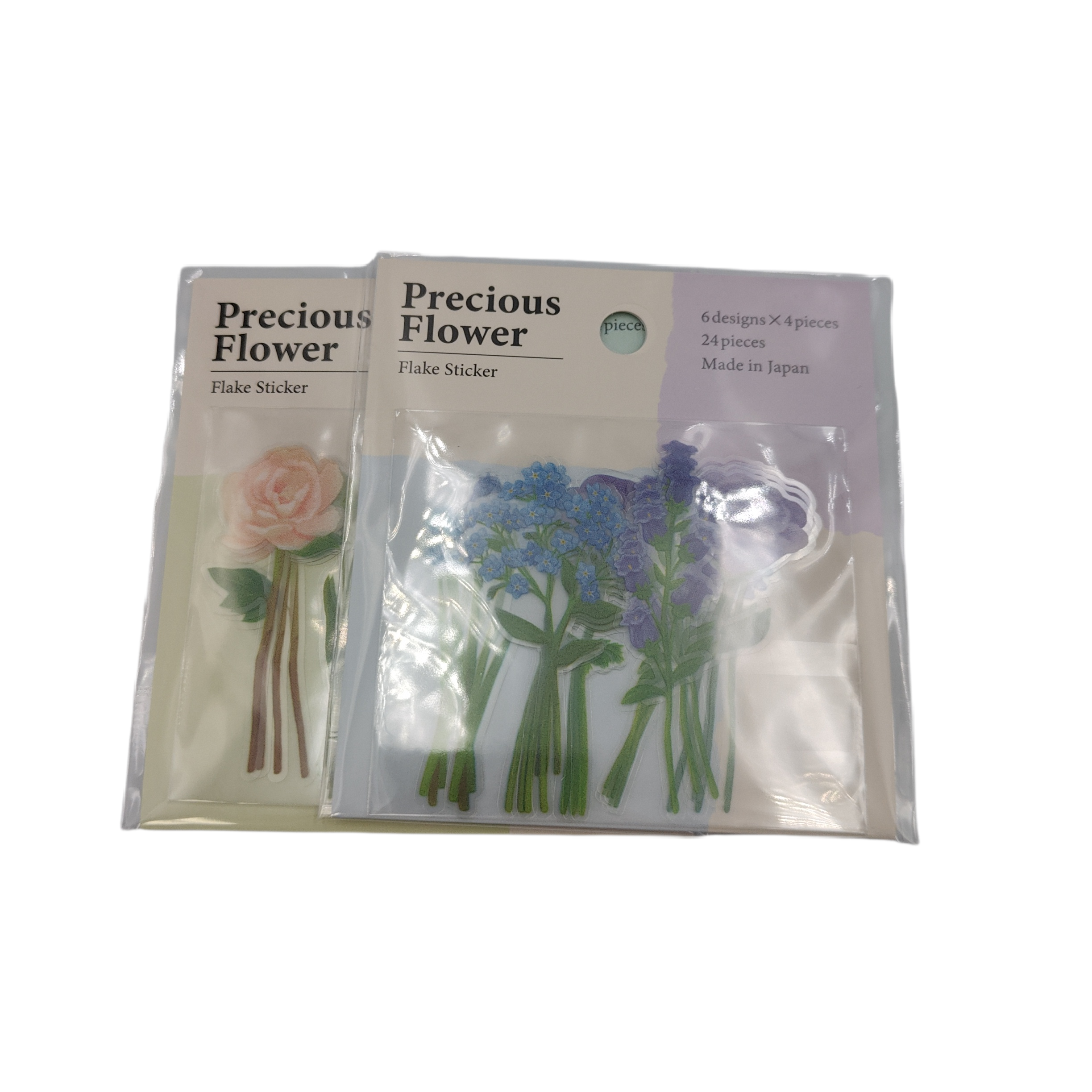 Realistic flower stickers that are popular overseas. It is a large piece that includes stems and leaves, so you can enjoy a variety of decorations such as pasting several pieces together to make a bouquet or pasting them together with photos. There are two patterns: ``Green'' with lots of leaves, which is easy to match with any flower sticker, and ``Blue'' with a calm color.