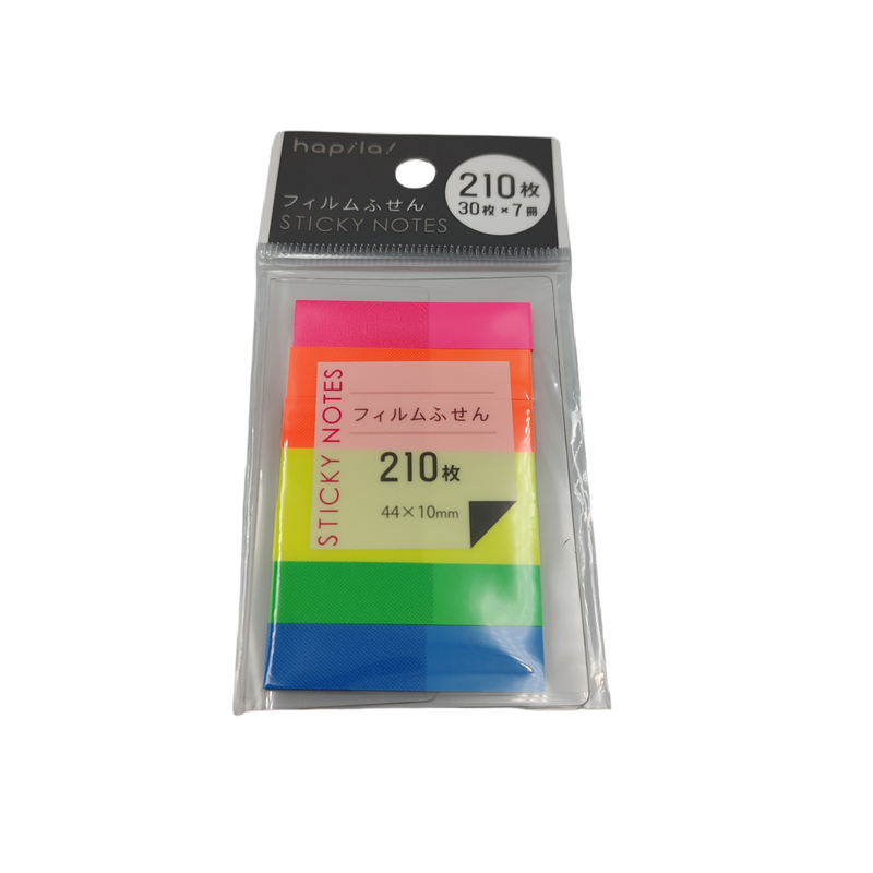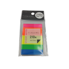 This is a film sticky note with a size of 44 x 10 mm. The base (mount) part can be sandwiched between notebook covers, etc. Contains pink, orange, yellow, green, and blue colors.