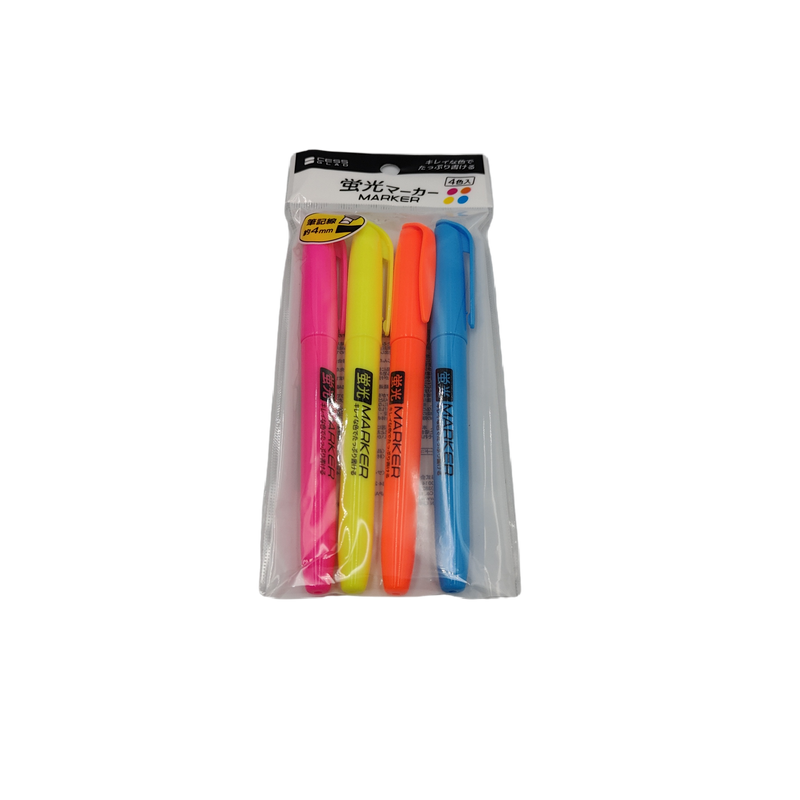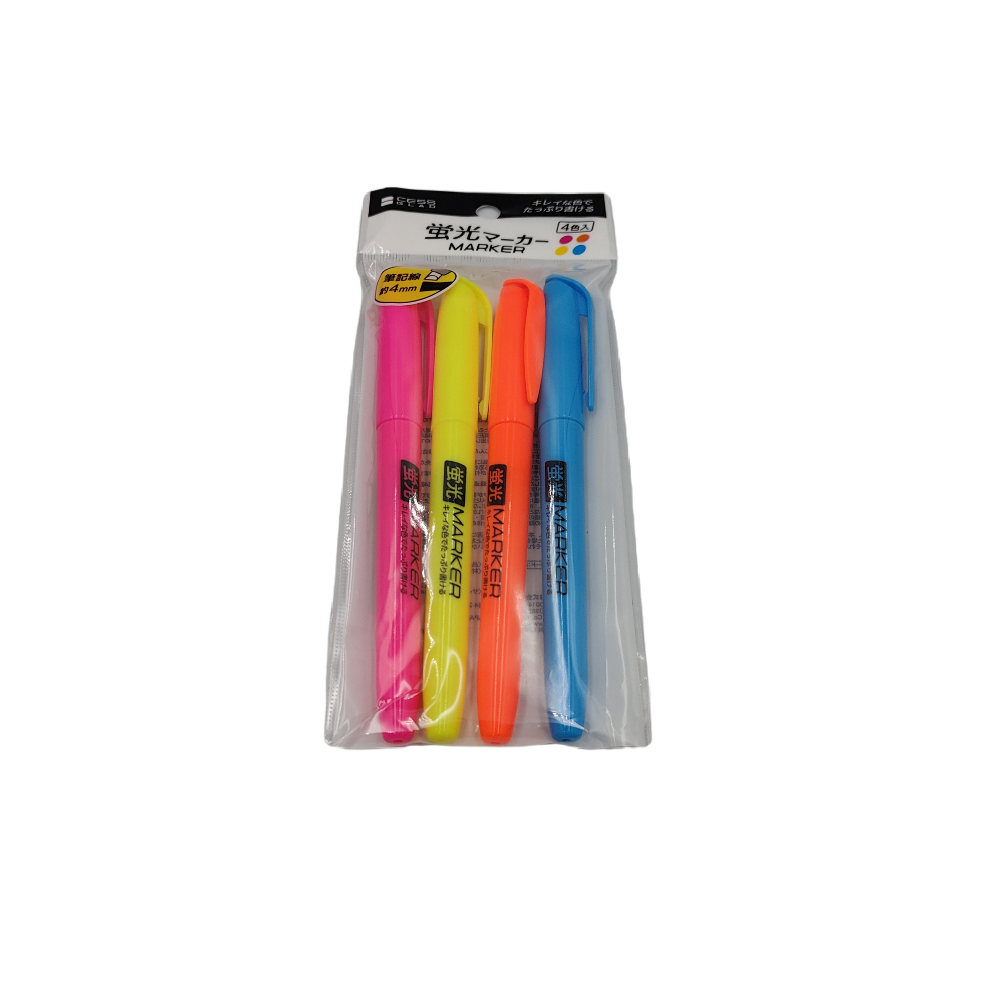 ・This is a highlighter set of 4 commonly used colors: pink, orange, yellow, and blue. ・The cap and body are the same fluorescent color, so they stand out on the sales floor. ・A marker with an easy-to-write 4mm line.