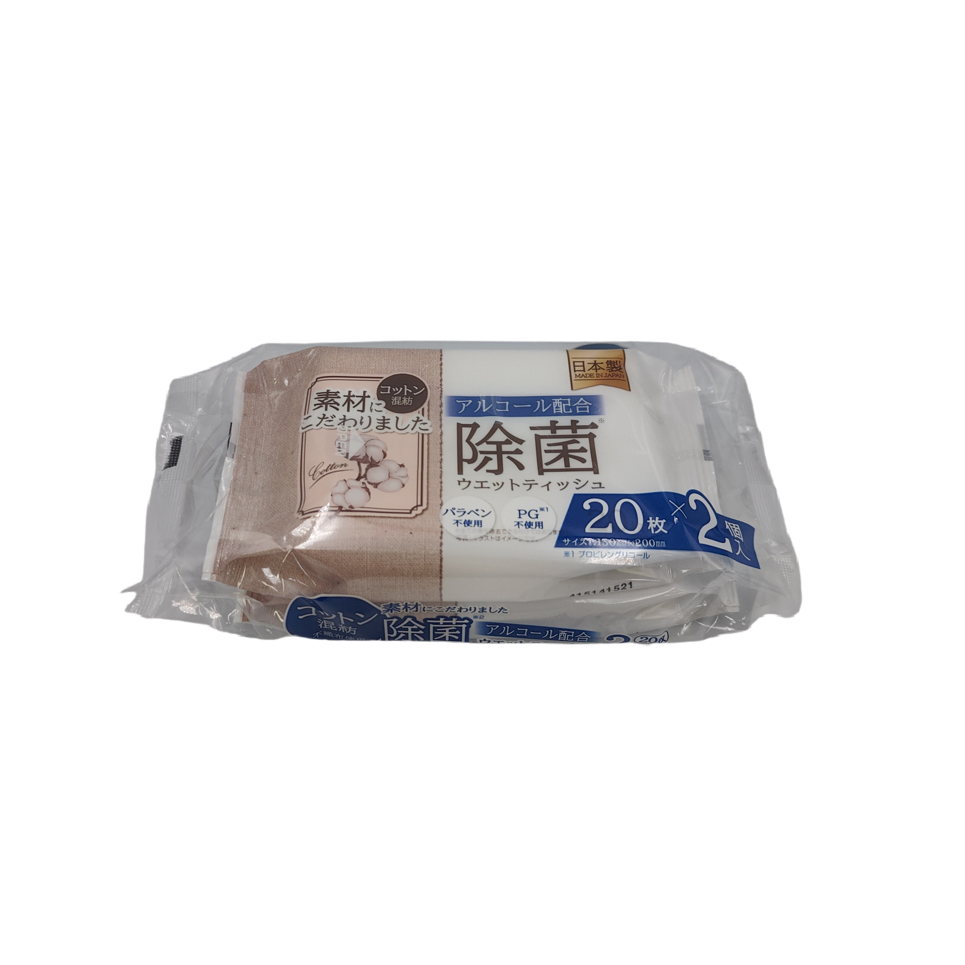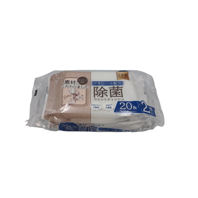 ・These disinfectant wet wipes are made from a cotton blend and are made with special care for the material. ・They do not contain parabens. ・They come in a set of two, each containing 20 sheets of 150mm x 200mm each.