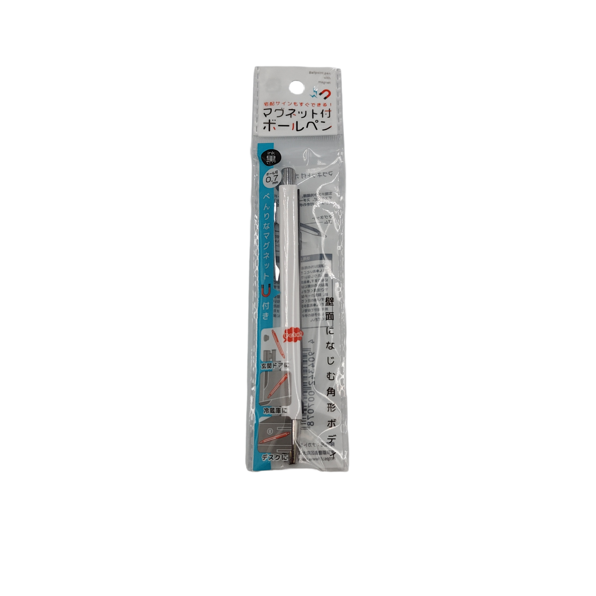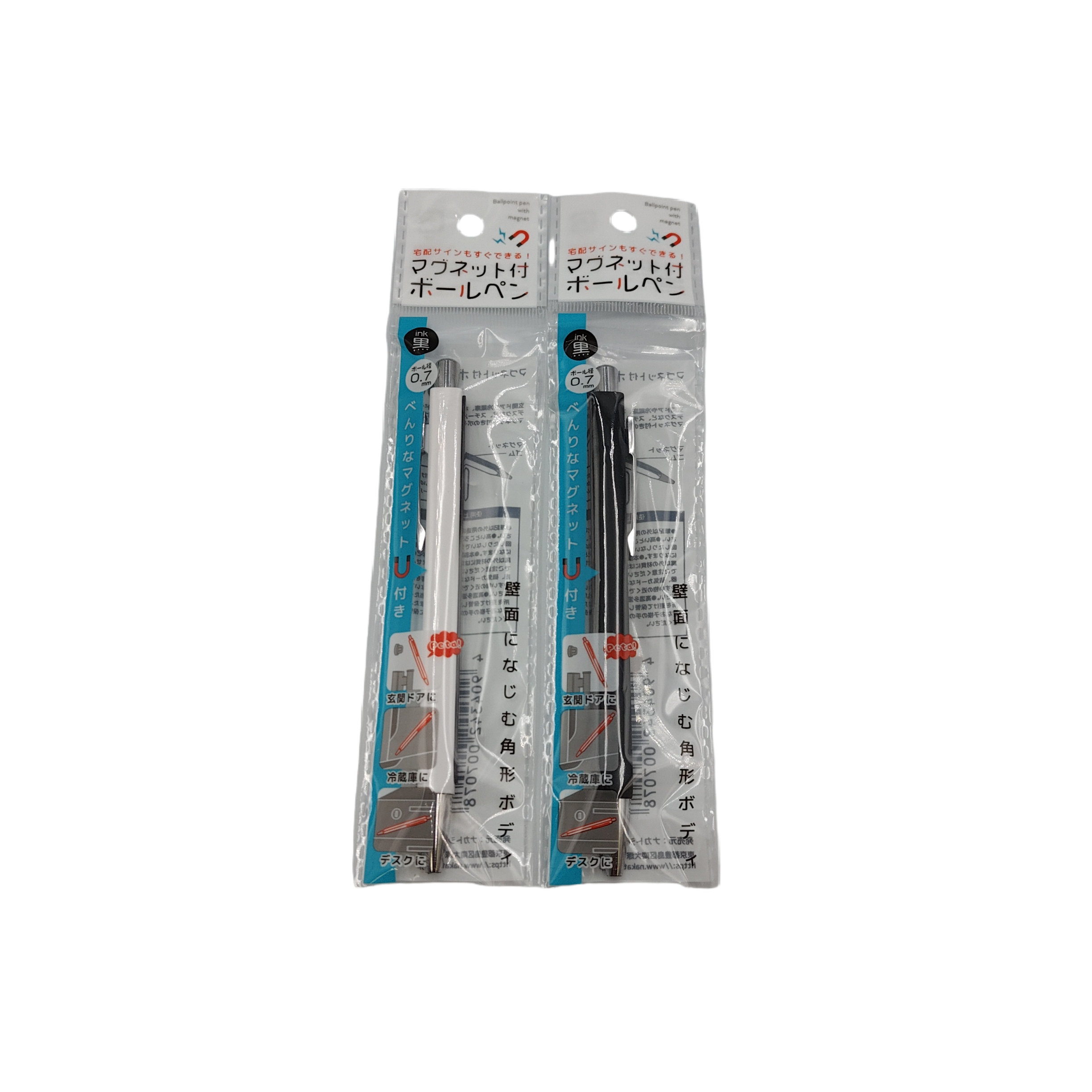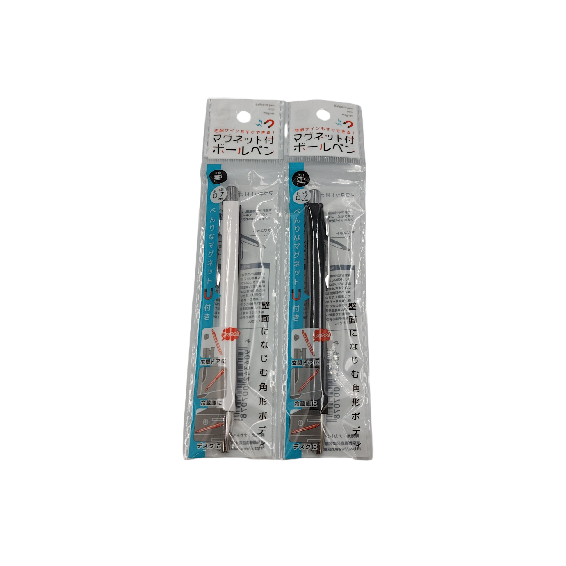 - A ballpoint pen with a magnet that can be attached to steel surfaces such as front doors, refrigerators, whiteboards, and desks. - A square body that blends in with the wall. - Can be used to sign for deliveries. - Available in two colors, white and black - A convenient magnet is attached to the back of the main body. - Black ink, ball diameter 0.7 mm