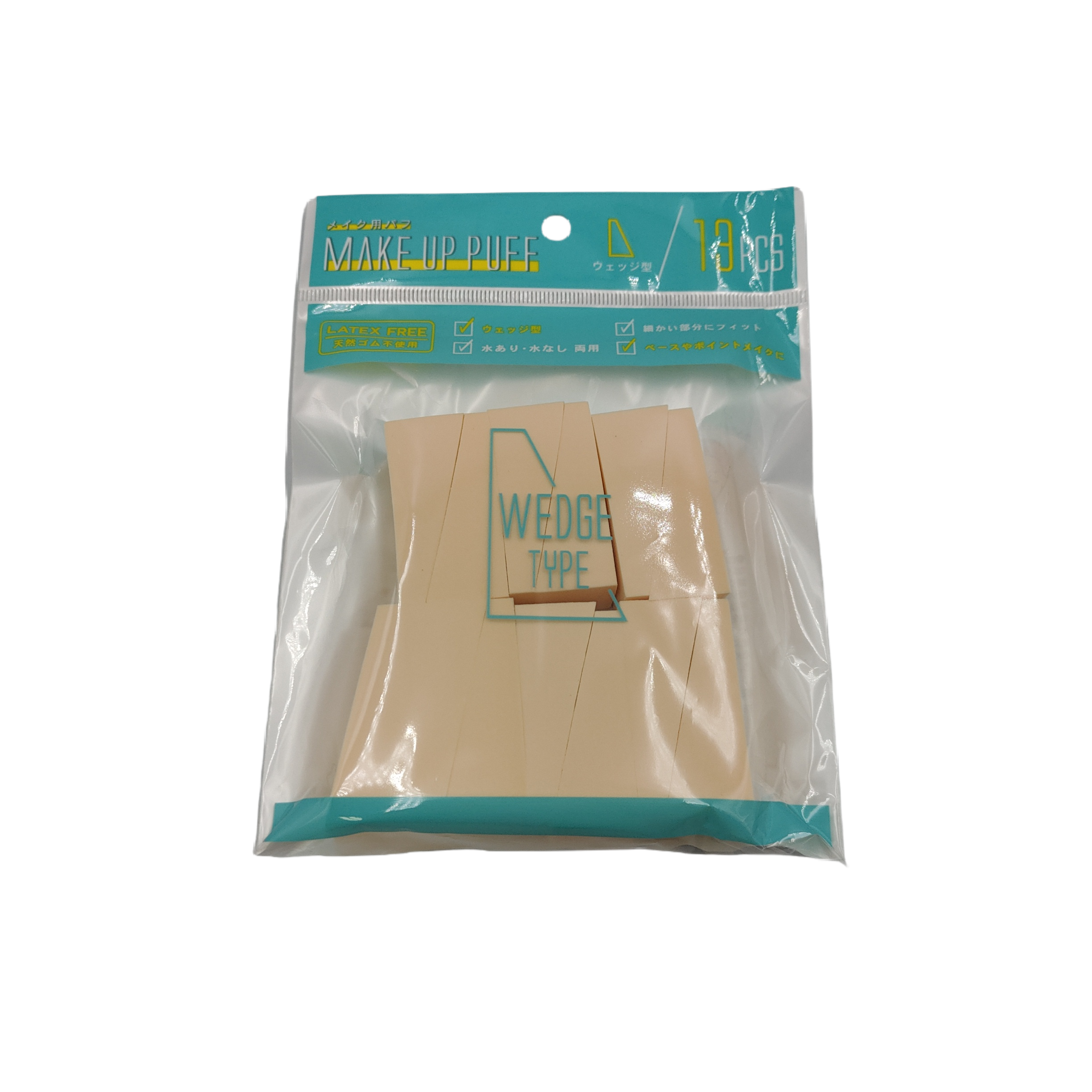 | Description of item | ・A wedge-shaped puff that is gentle on the skin and feels good against the skin.・It absorbs water and spreads well and does not become uneven, so it can be used for liquid foundations, powder foundations, BB creams, CC creams, etc.It has good coverage because it adheres to the skin finely.・It does not use natural rubber and can be used by people with latex allergies.* 4589925160953 This is a renewal product of "Wedge type makeup puff 13P". |