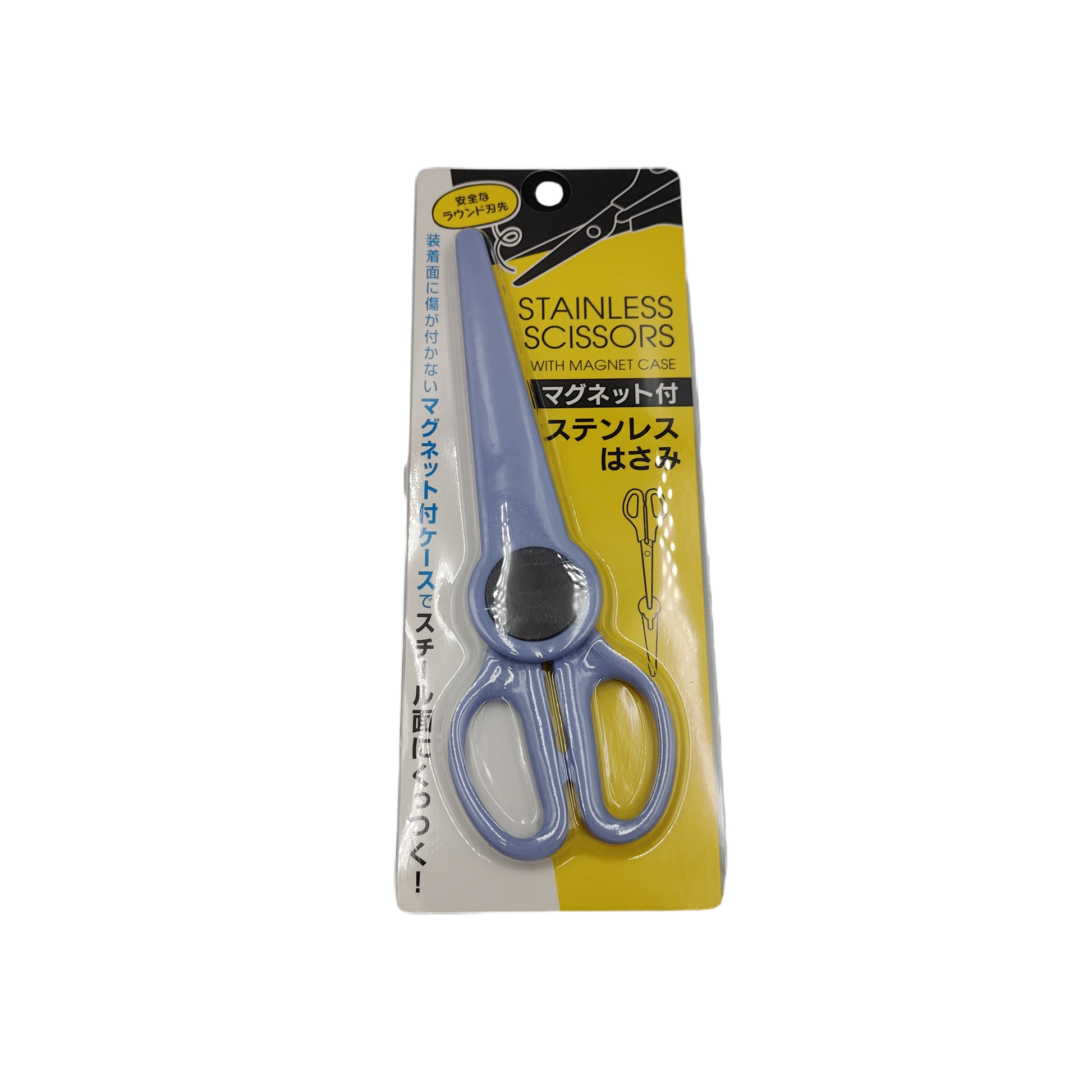 These convenient scissors can be used by attaching the included case to a steel surface.