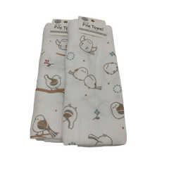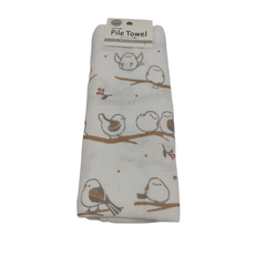 A face towel with pile on one side. An assortment of 2 patterns with a long-tailed moth motif.