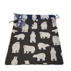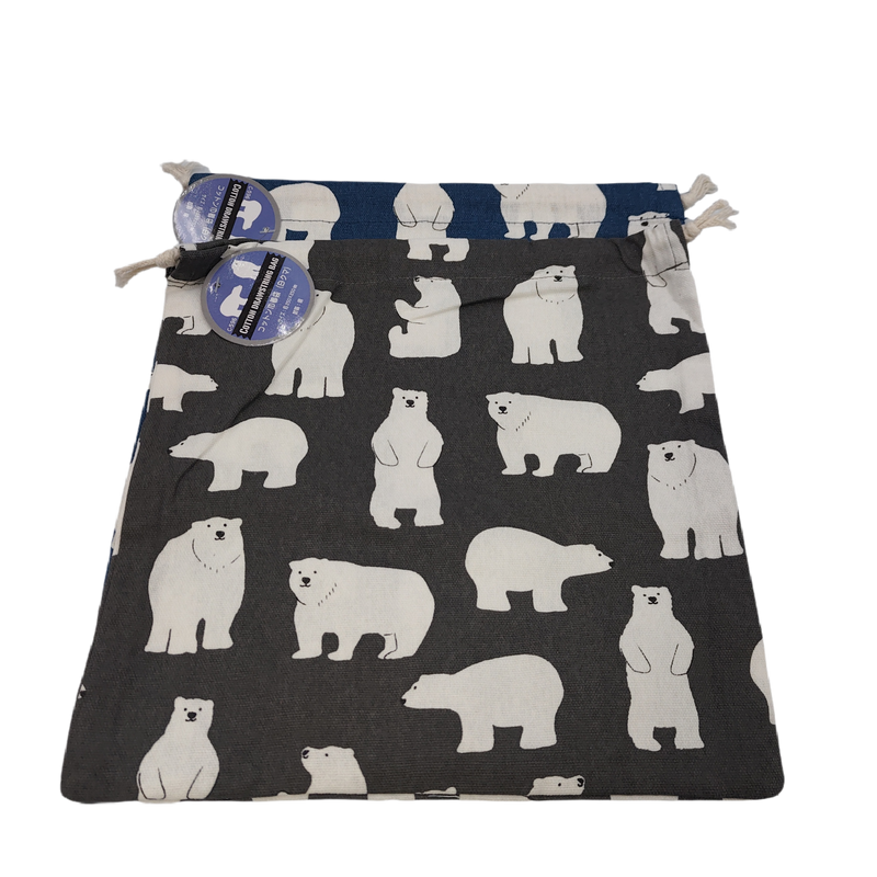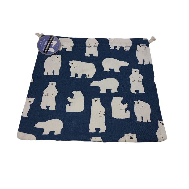 - A square drawstring bag that can be easily used to store small items, and a polar bear design that can also be used by adults.