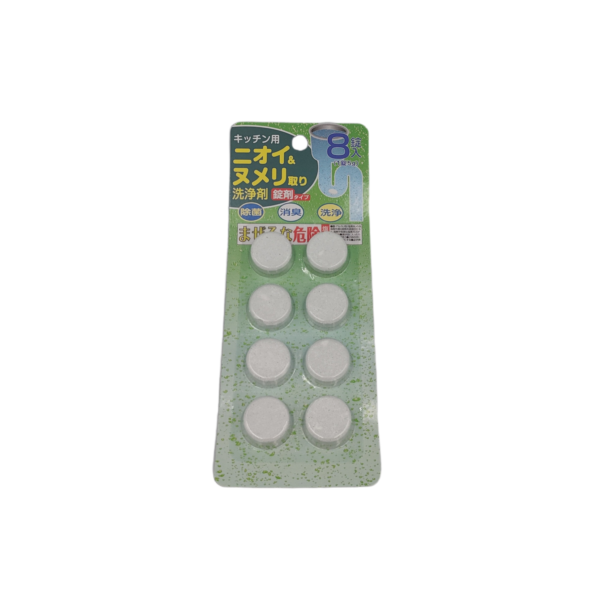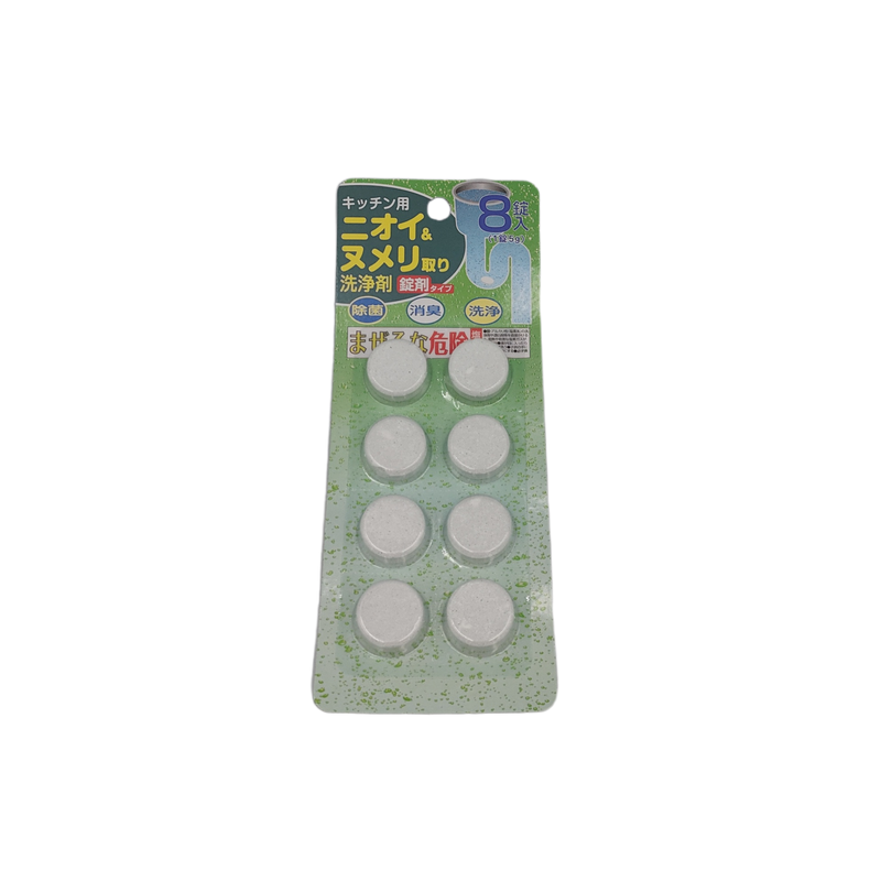This is a kitchen odor and slime remover that can clean, disinfect, and deodorize. Please cut out each tablet with scissors and use it.