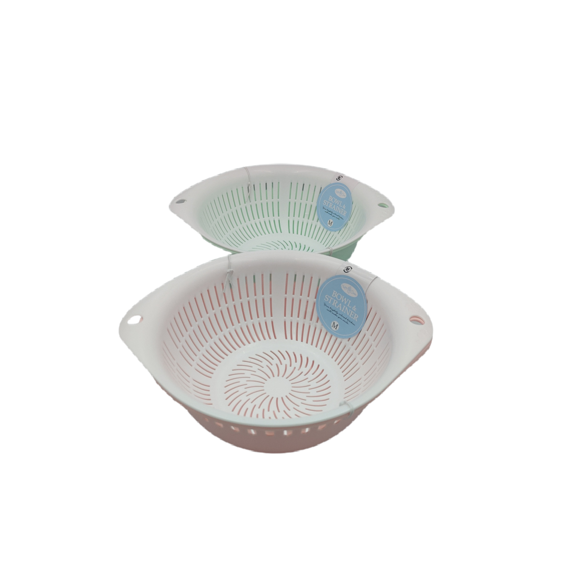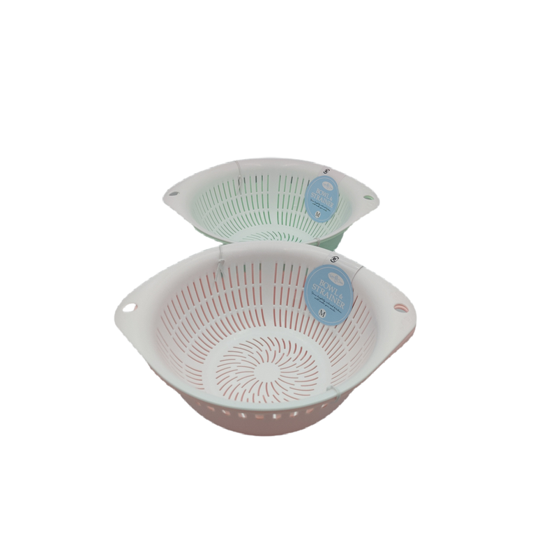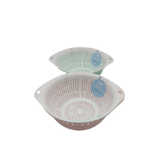 This is a two-piece set consisting of a colander and a bowl. The bowl has a drainage hole to prevent vegetables from spilling out while washing.