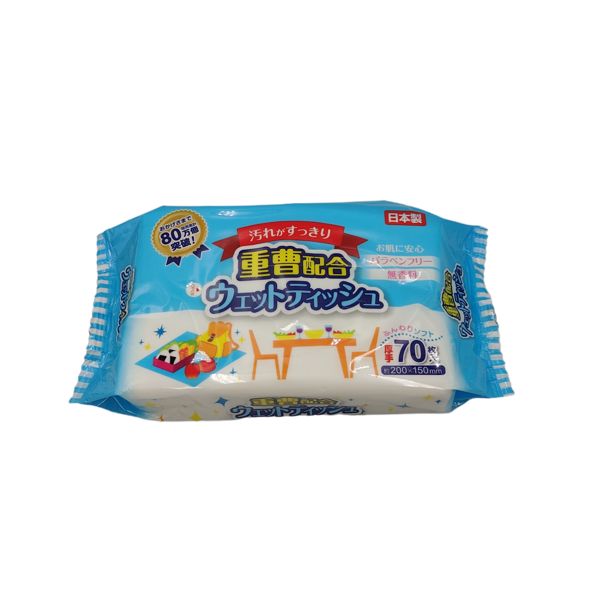 This is a generous pack of 70 wet wipes. The safe ingredient baking soda thoroughly removes dirt.