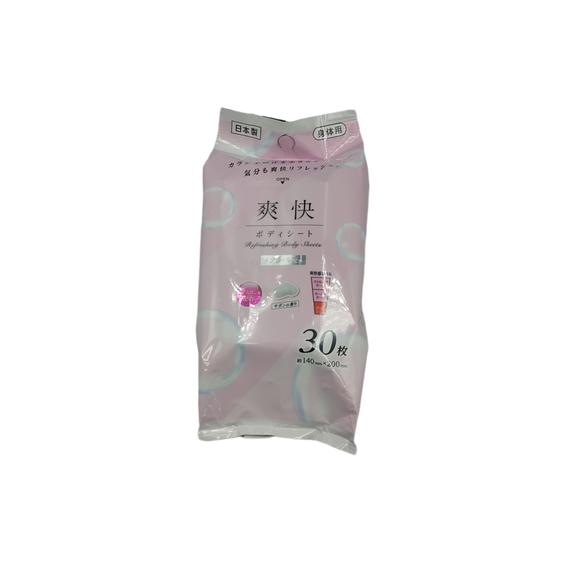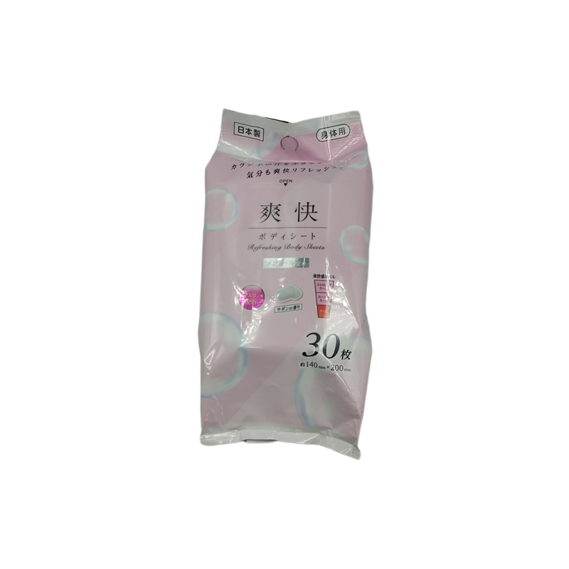 ・This body sheet contains menthol. ・It gives you a refreshing feeling. ・It is ideal for wiping off sweat, stickiness, and dirt. ・It can also be used on the face, so you can wipe off sweat from all over your body and feel refreshed. ・It contains hyaluronic acid, a moisturizing ingredient, and has a refreshing soap scent.
